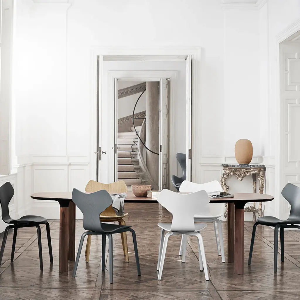 The Grand Prix chair was designed by the Danish architect and designer Arne Jacobsen in 1957 and was first presented at the Spring Exhibition for Danish crafts and furniture design. The chair was originally presented as Model 3130 but was renamed after being awarded the prestigious Grand Prix at Triennale di Milano in 1957. It is a great example of a furniture design that is able to enhance an entire room with its mere presence.