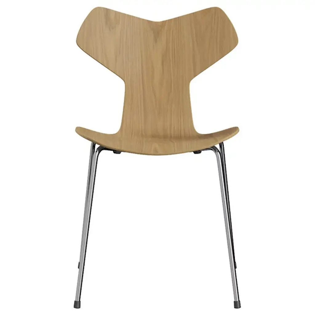 The Grand Prix Chair from Fritz Hansen is designed by Arne Jacobsen, and it shares a name with the Grand Prix award, which it received in 1957 at the Triennale in Milan, representing the “finest distinction” of the exhibition. It is recognized for its sharp angles and armless design. The chair has outwardly contoured legs that keep it nicely balanced. The chair is composed of FSC-certified wood sourced from responsibly managed forests, and a chrome steel frame strengthens it. Stack up to 12 chairs of the same, making for hassle-free storage.