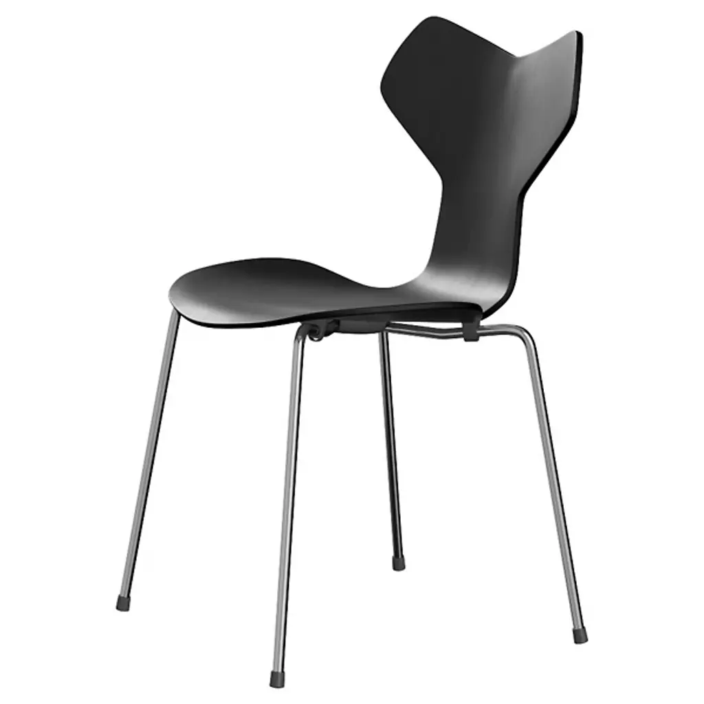 The Grand Prix Chair from Fritz Hansen is designed by Arne Jacobsen, and it shares a name with the Grand Prix award, which it received in 1957 at the Triennale in Milan, representing the “finest distinction” of the exhibition. It is recognized for its sharp angles and armless design. The chair has outwardly contoured legs that keep it nicely balanced. The chair is composed of FSC-certified wood sourced from responsibly managed forests, and a chrome steel frame strengthens it. Stack up to 12 chairs of the same, making for hassle-free storage.