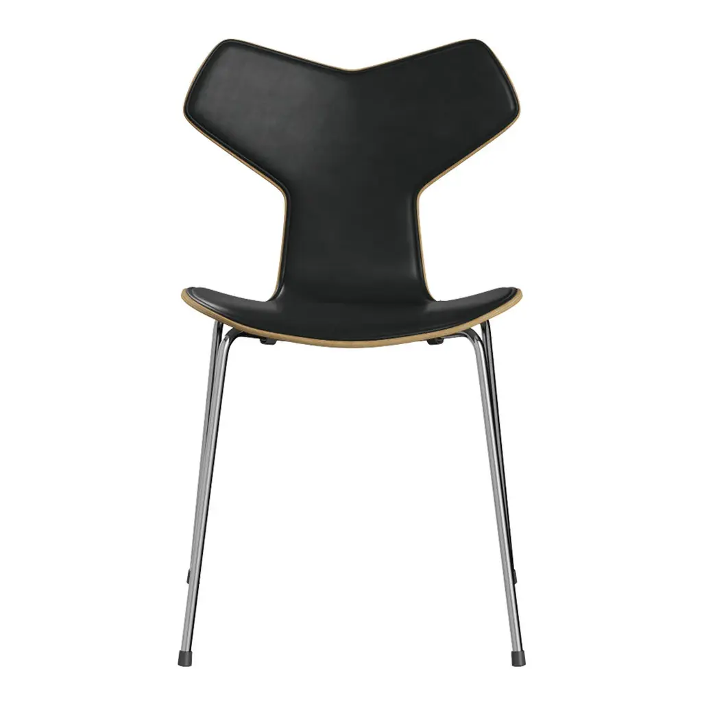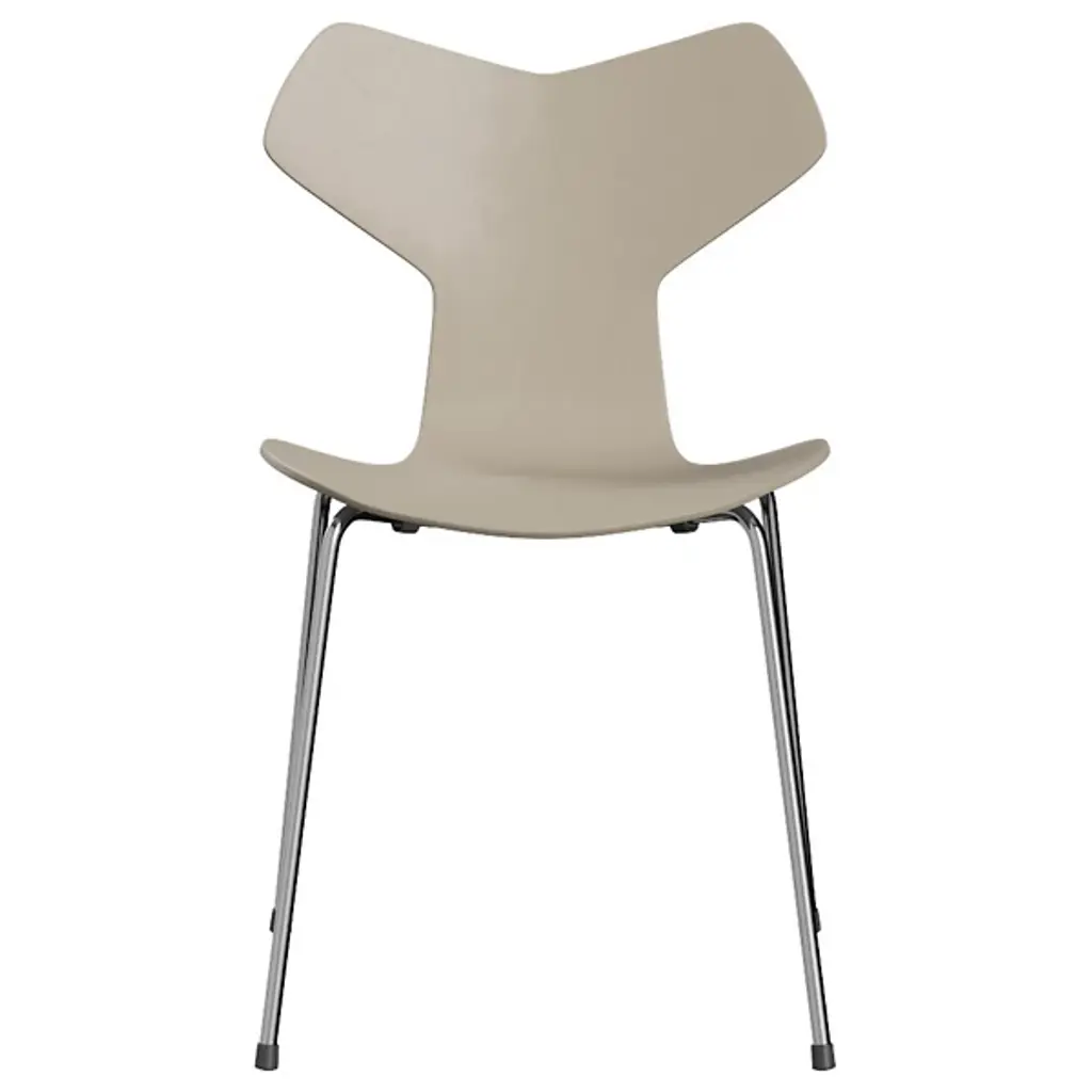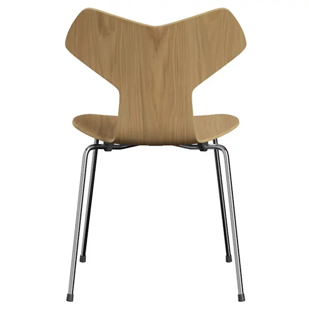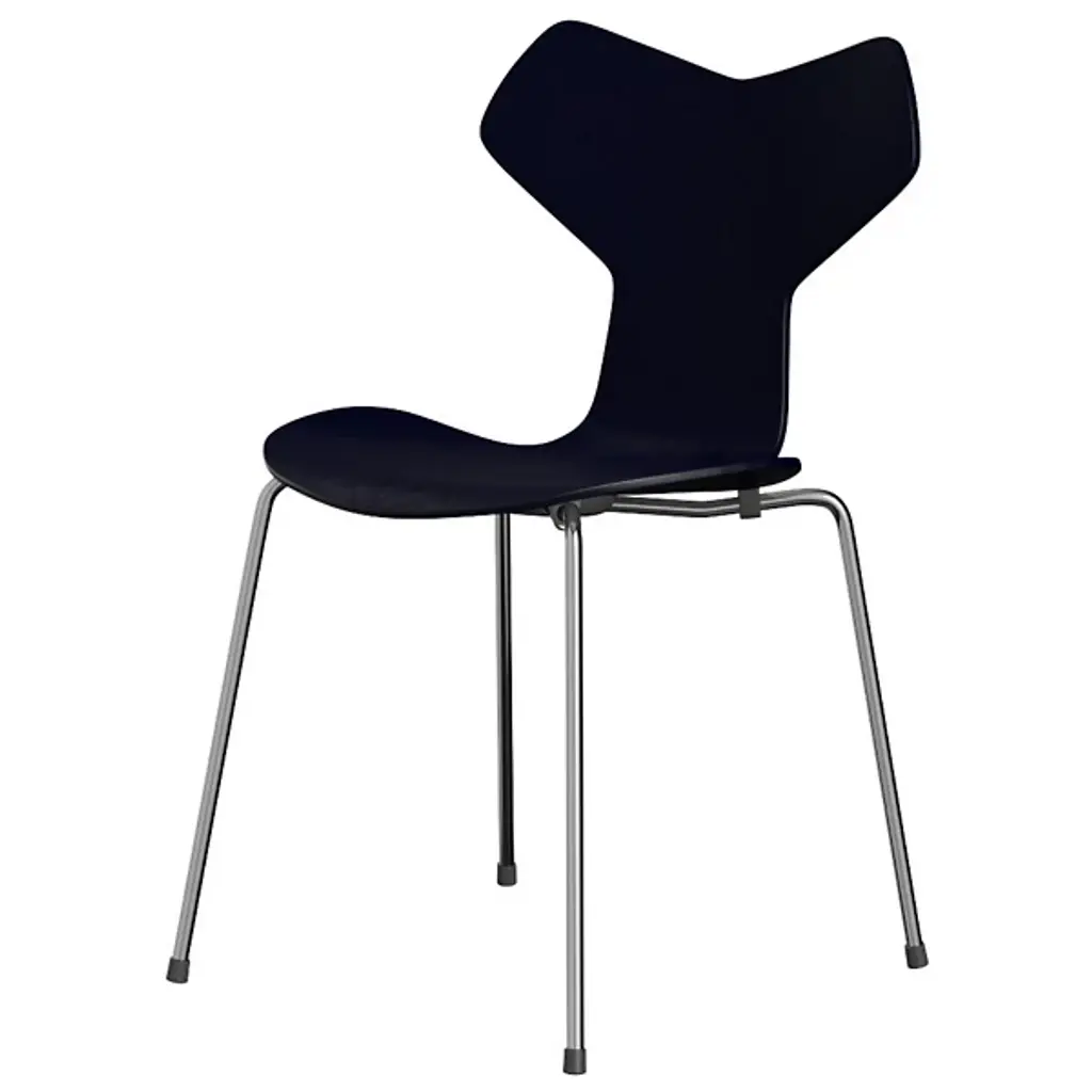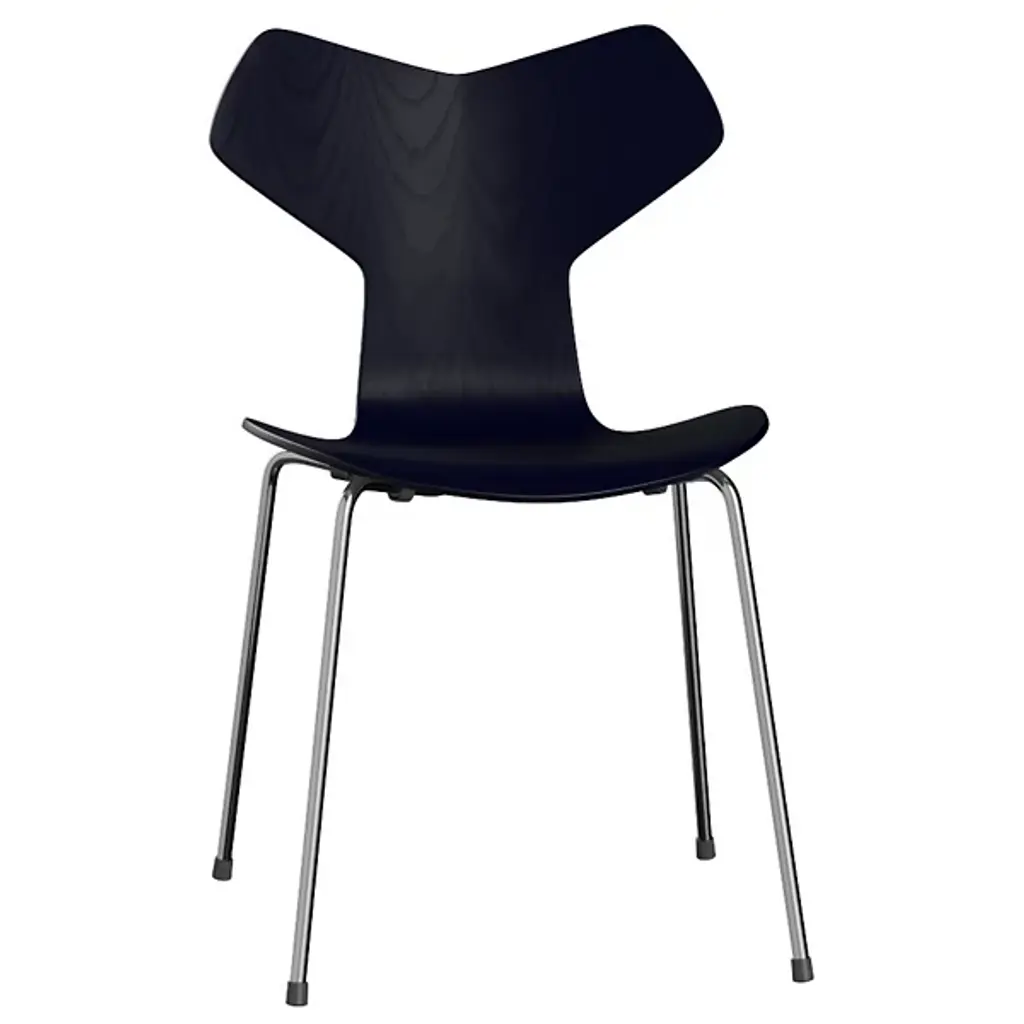 The Grand Prix Chair from Fritz Hansen is designed by Arne Jacobsen, and it shares a name with the Grand Prix award, which it received in 1957 at the Triennale in Milan, representing the “finest distinction” of the exhibition. It is recognized for its sharp angles and armless design. The chair has outwardly contoured legs that keep it nicely balanced. The chair is composed of FSC-certified wood sourced from responsibly managed forests, and a chrome steel frame strengthens it. Stack up to 12 chairs of the same, making for hassle-free storage.
