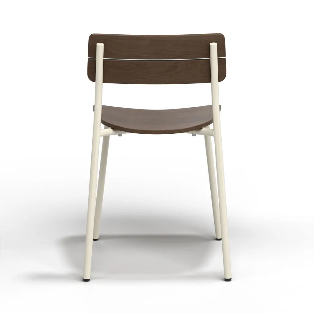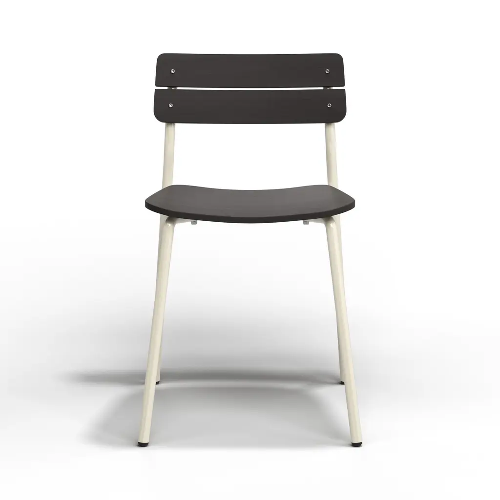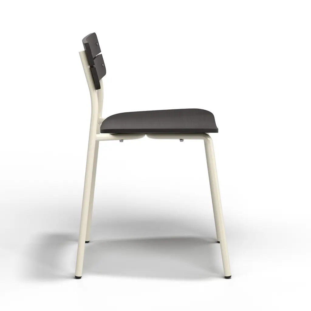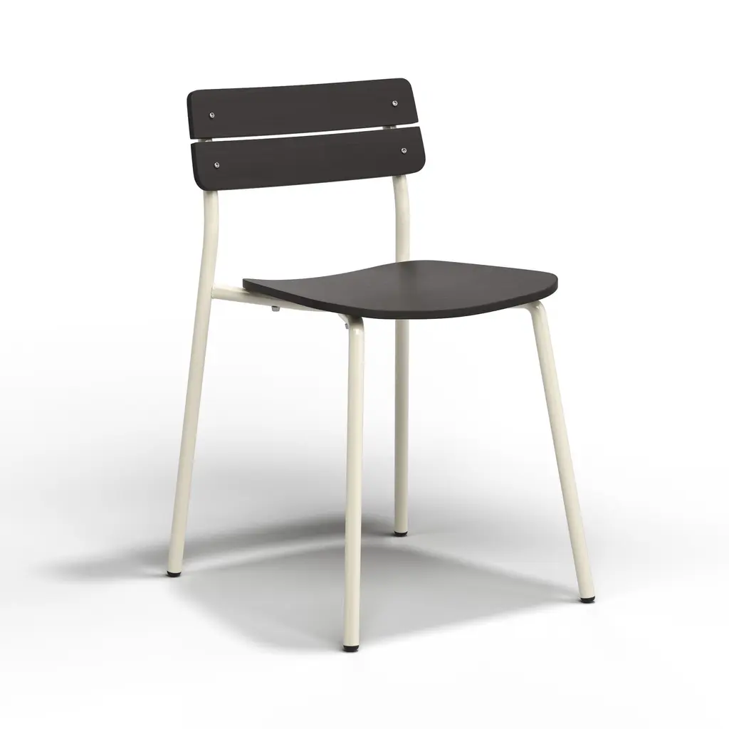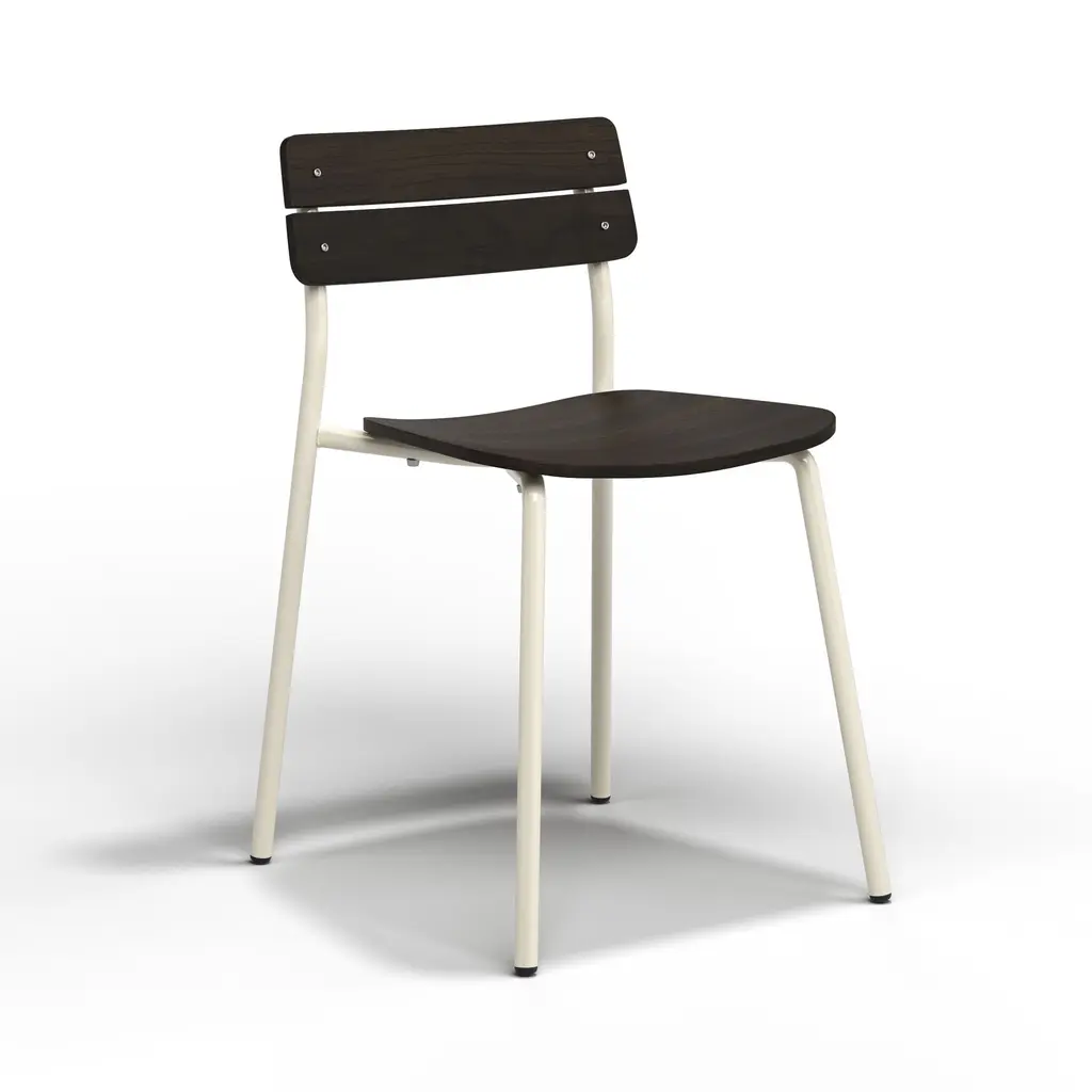 Brought to you by Grand Rapids Chair Company. It's modern, clean-lined & stackable. The back design cleverly conceals the screws. A bentwood seat contours to the body.
