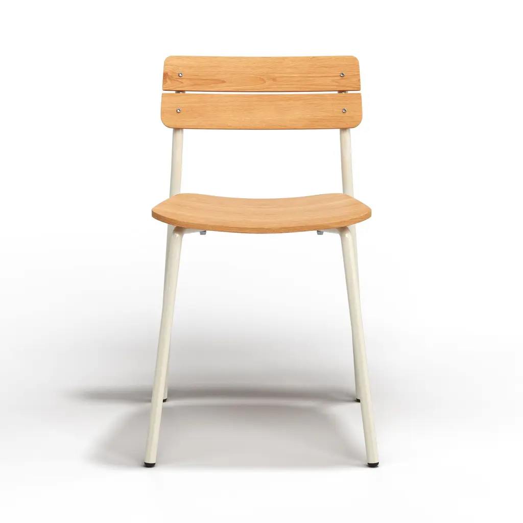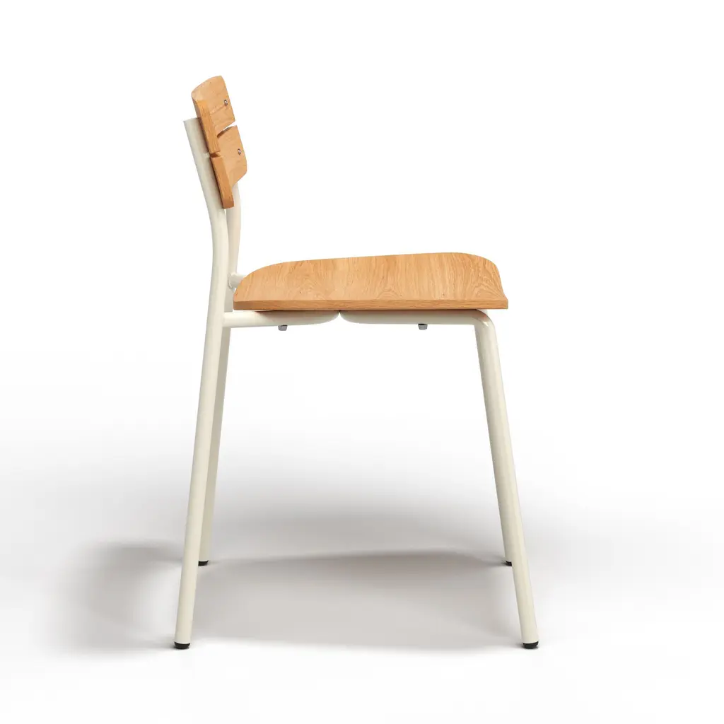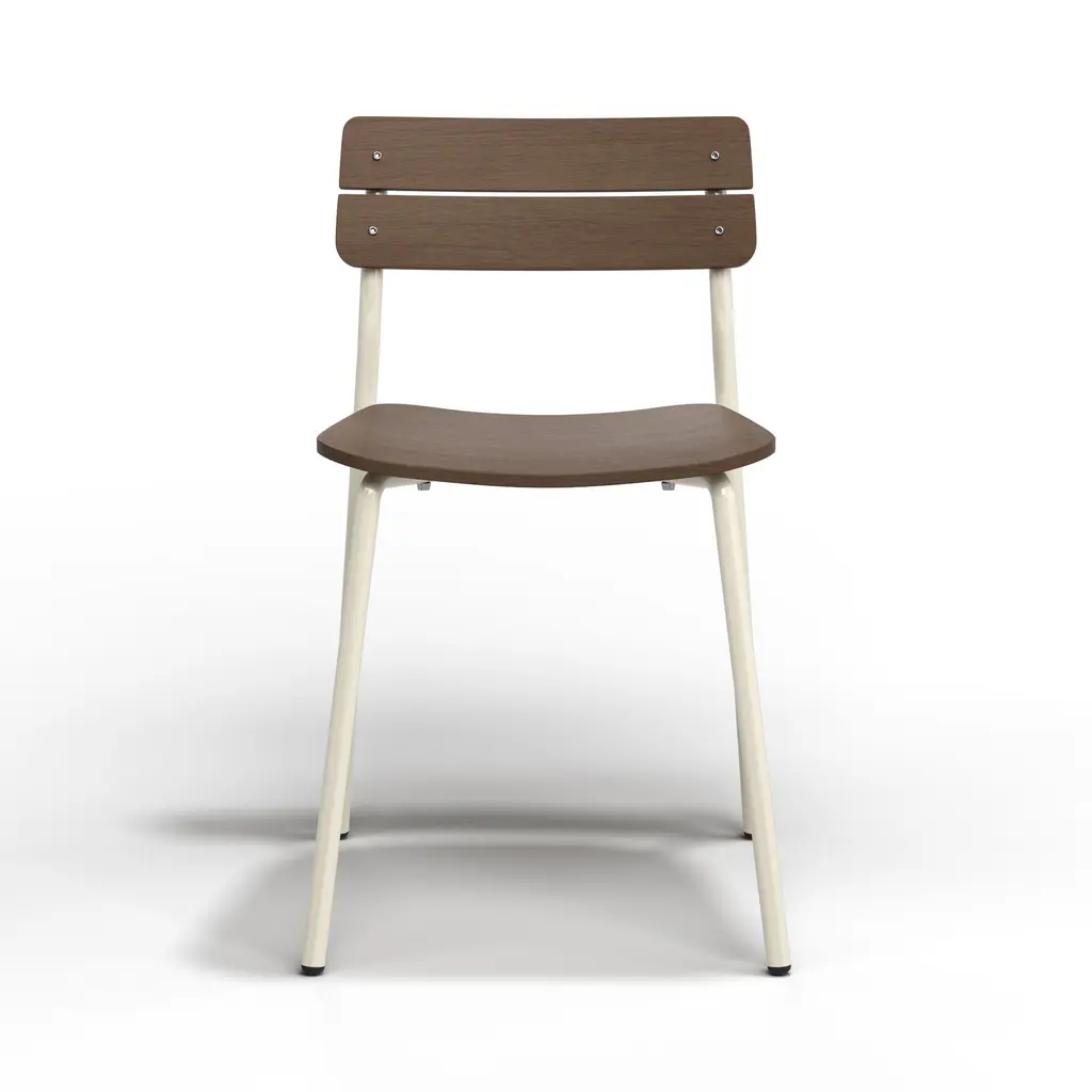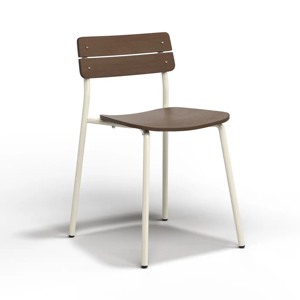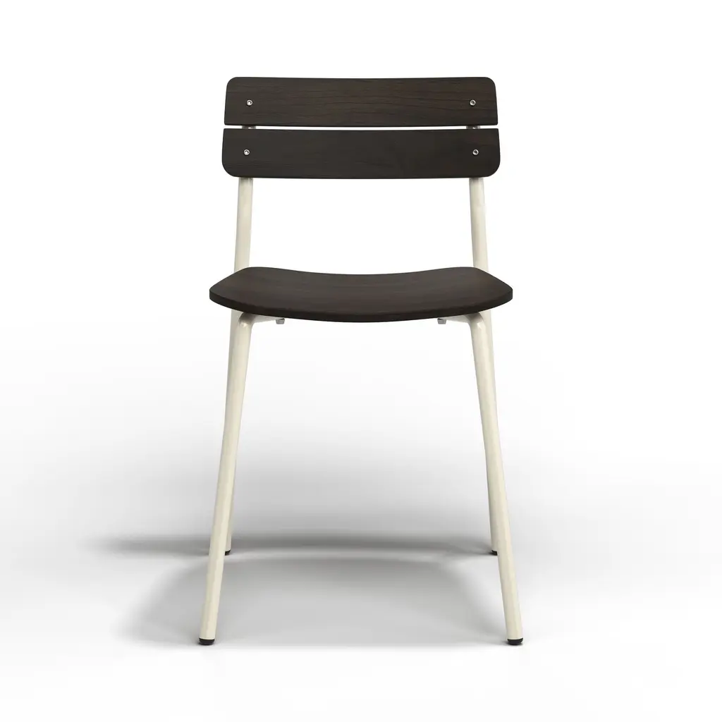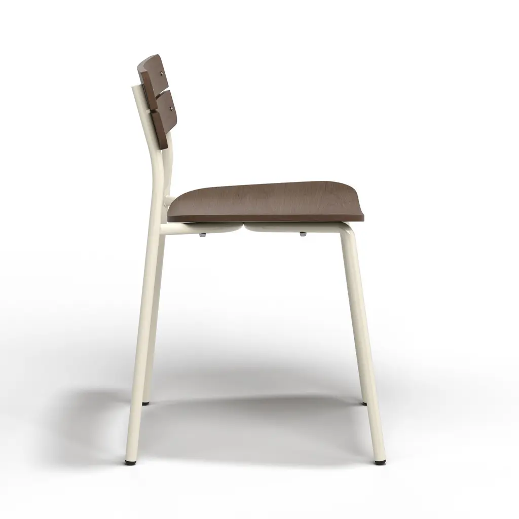 Brought to you by Grand Rapids Chair Company. It's modern, clean-lined & stackable. The back design cleverly conceals the screws. A bentwood seat contours to the body.