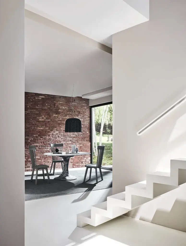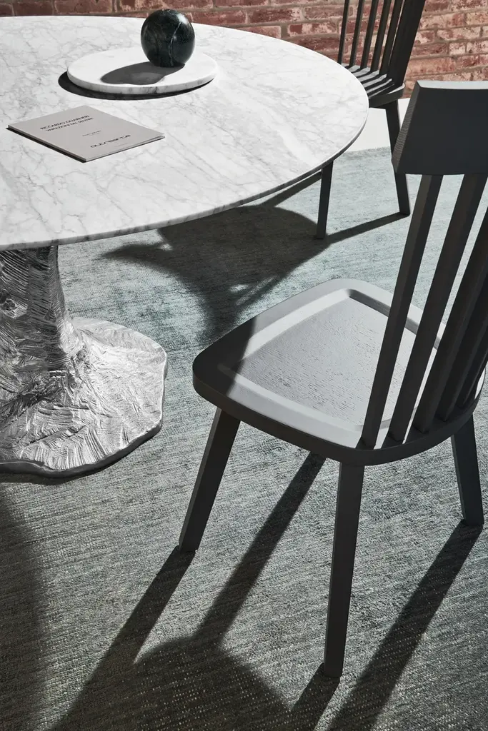Gray 21 is a single-material chair with high backrest and visible vertical slats without armrests. It is characterised by clean and essential lines, with the structure in natural painted Canaletto walnut, bleached oak or white, grey, black, ocean or dove-grey, Blueberry, Date, Ginger lacquered oak. Optional seat cushion for added softness.Vintage soul and contemporary design characterise Gray, an articulated collection of chairs, armchairs, sofas, tables and coffee tables that mixes the austere elegance of classic furnishings with the simplicity of Nordic forms. A collection in solid walnut or oak embellished with workmanship, shapes and unusual materials, such as stone, porcelain, aluminium and marble.