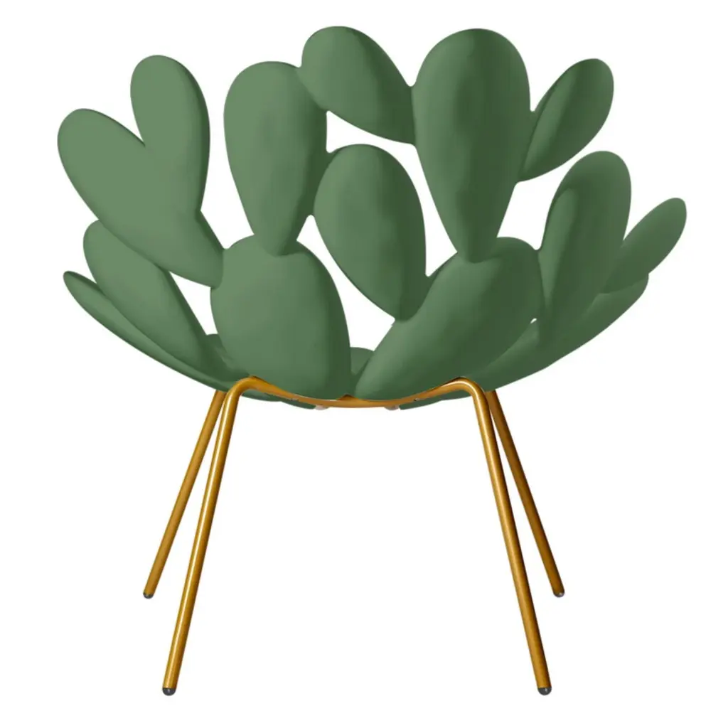 Scroll down and click "view all from Seller" to see more than 400 other unique products.This green and brass indoor / outdoor armchair features a brass finish mid century legs.The prickly pear is an iconic plant of the Mediterranean. It represents the welcoming traits of the land in which it grows, a magic territory that tastes like holiday and discovery. It evokes unforgettable places and unique relaxing moments where the air is clear and full of light. Filicudi is the new armchair designed by Marcantonio.Made in Italy:Made in Italy furniture means design, quality, style and sophistication.The typical elegance of Italian design can be found in this piece. No wonder that the world famous designers like Philippe Starck, Karim Rashid, Piero Lissoni, Rodolfo Dordoni and many others put their signature next to Made in Italy.