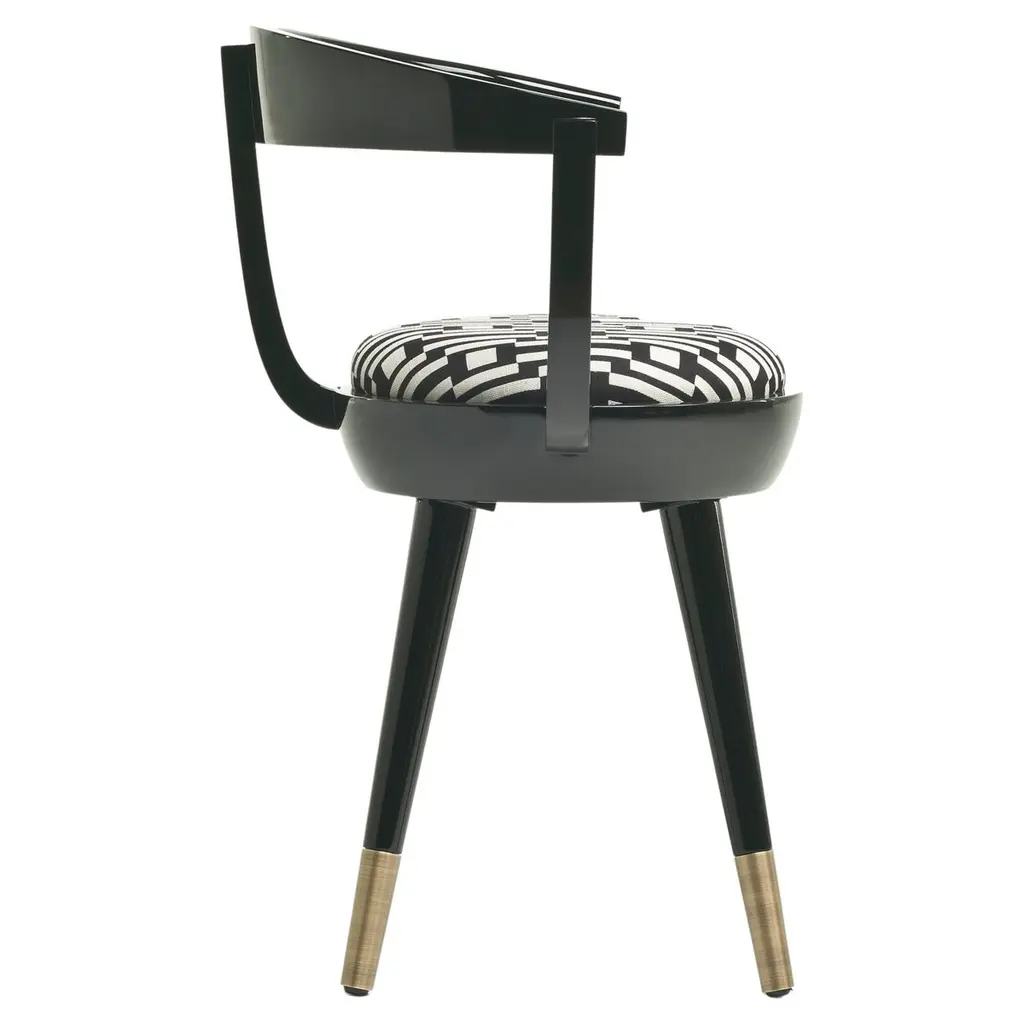This elegant chair has a minimalist style and a simple and square design. The solid brass structure of this piece is entirely hand-crafted by skilled Italian artisans and the seat and back are upholstered only in the finest fabrics by L'Opificio called Hyonose Deco Grigio/Bronzo, tailored with a strip of velvet.