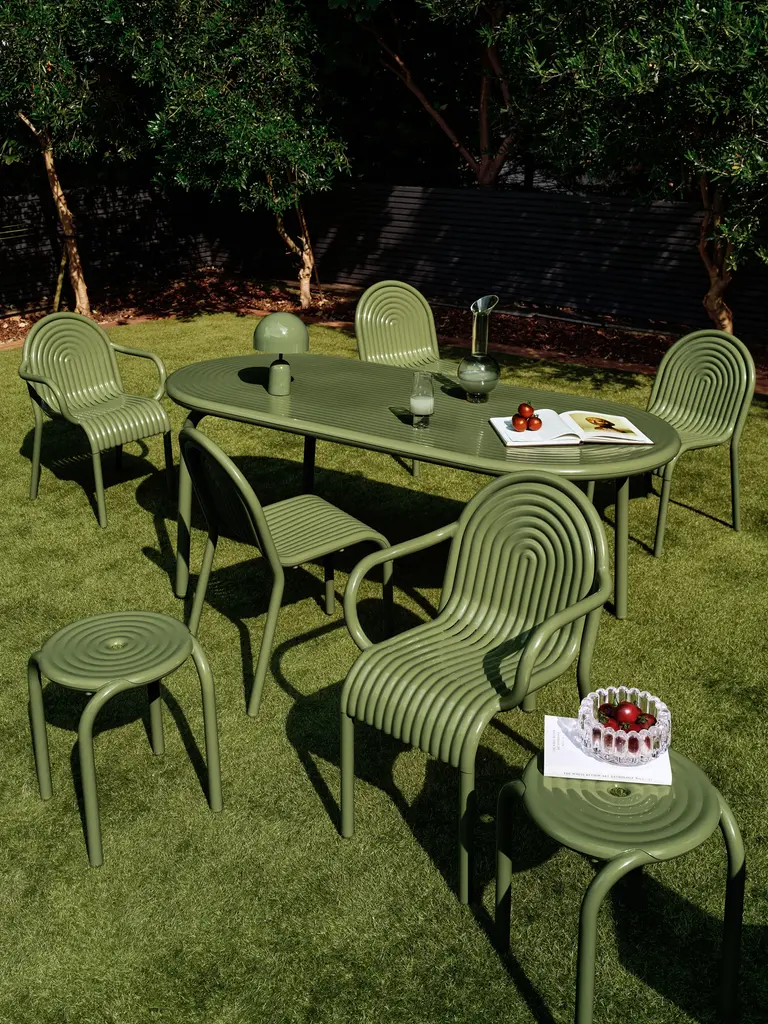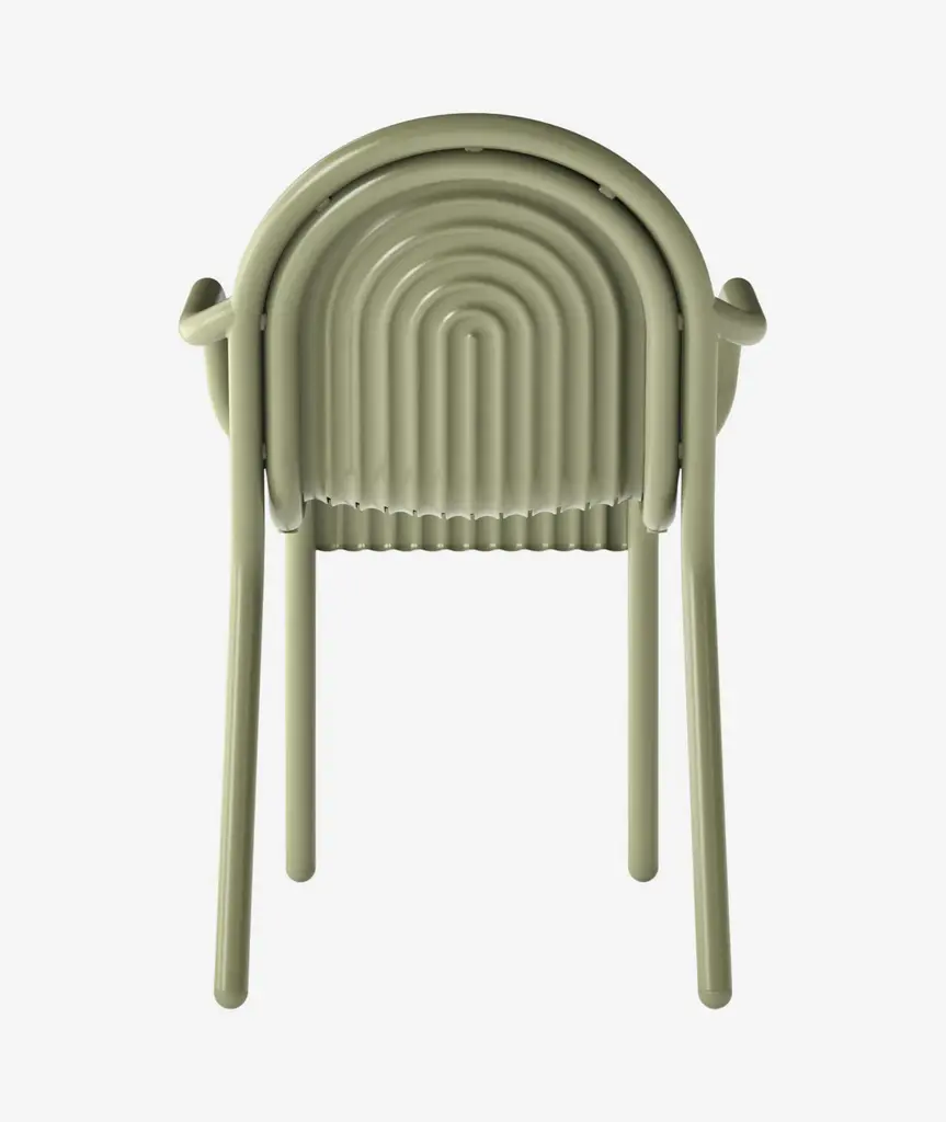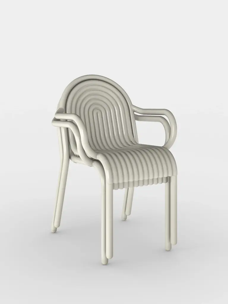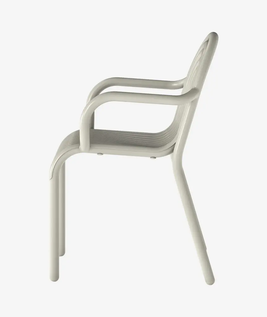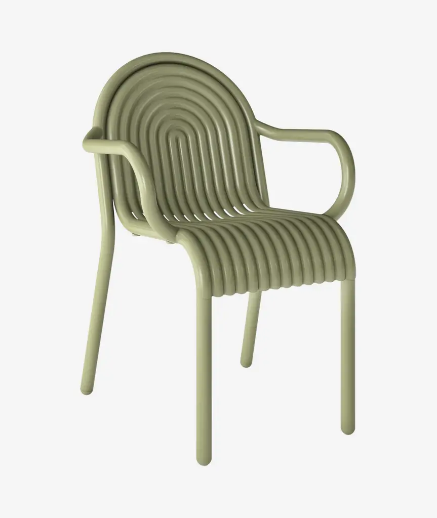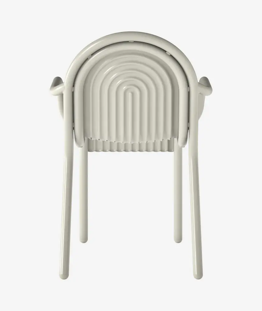 Introducing the Groove Arm Chair in Putty, part of Tom Dixon's first outdoor collection. The Groove Arm Chair features distinctive art deco style raised ridges and is made from premium aluminum. This outdoor Arm Chair utilizes cutting-edge manufacturing techniques for superior durability and features a high-quality powder-coated finish, ensuring suitability for outdoor use and is both solvent and VOC-free.