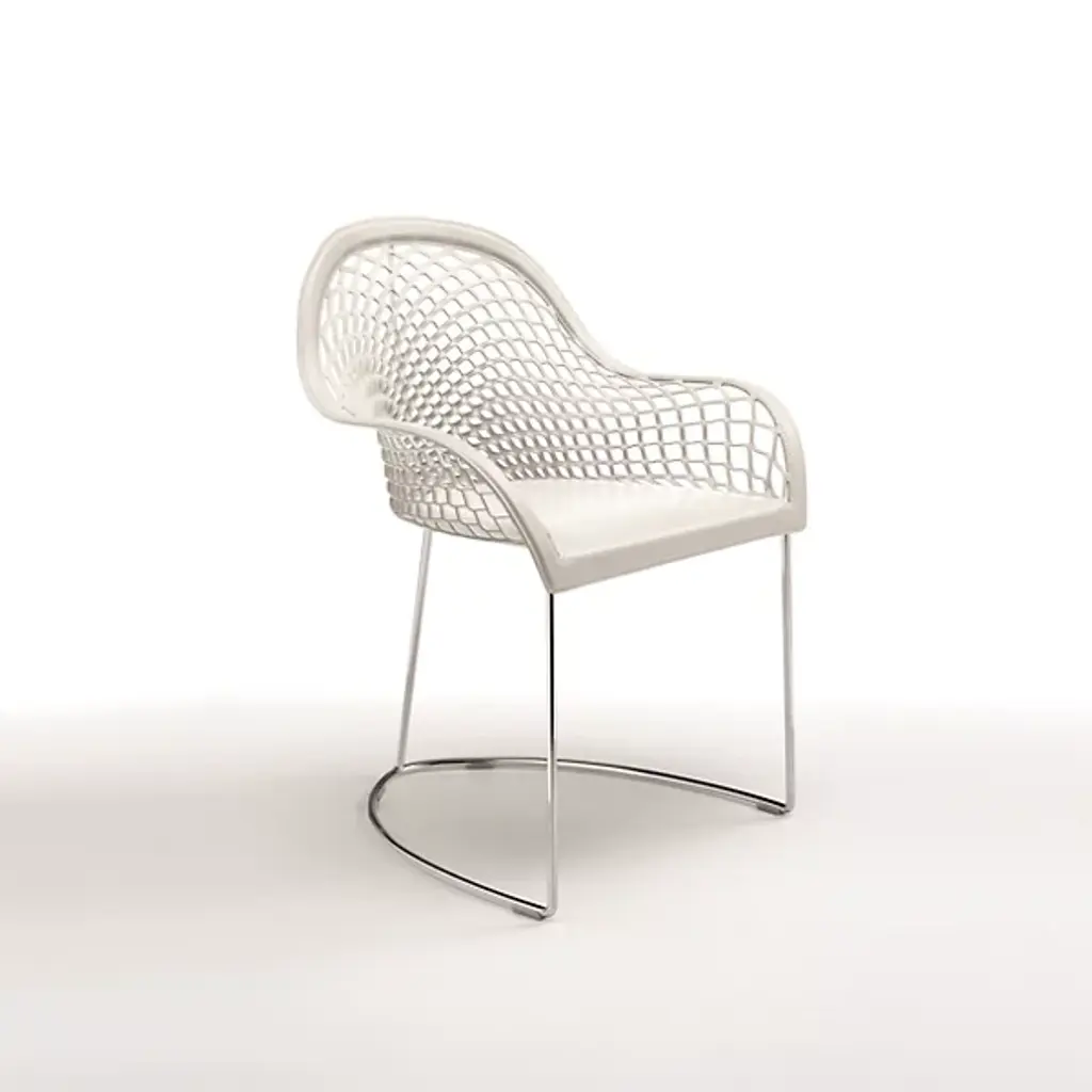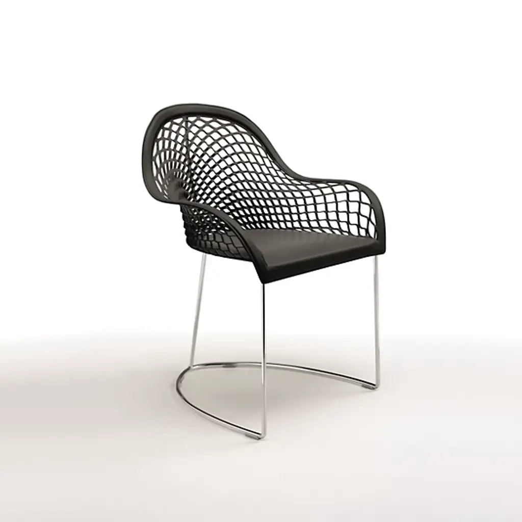 Elevate the décor of the spaces of your modern home with the refined style of the Guapa Arm Chair from Midj. Starting with a set of three thin legs that descend from the body, they connect to a sled-shaped base made of matching smooth metal. The seat itself showcases as a singular piece made of hide. The seat, backrest, and arms flow together, shaped into an ideal demonstration for the human body.