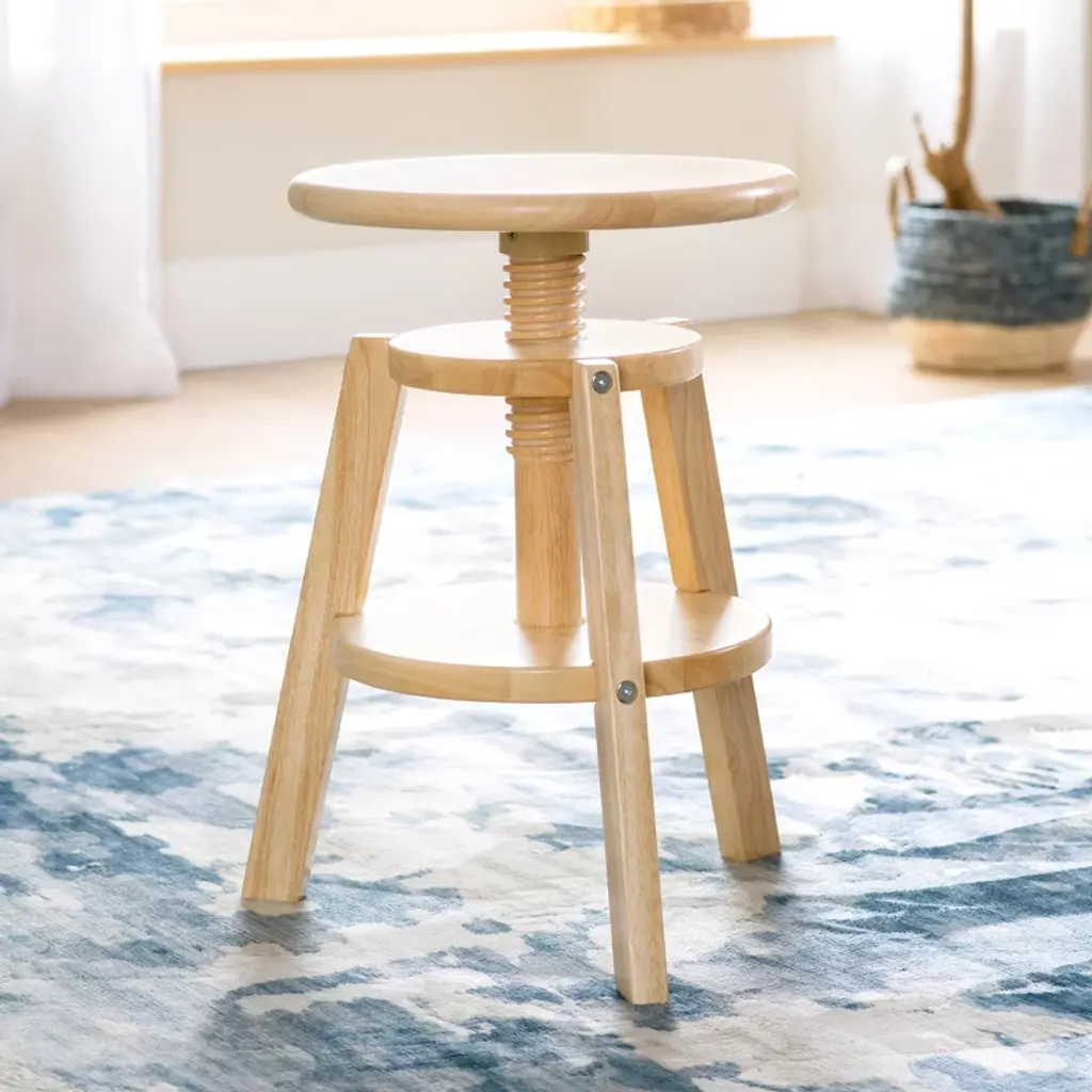 Designed for comfort and creativity, this adjustable corkscrew-style stool supports children as they sit, lean, and shift while creating. The solid rubberwood construction adjusts from 16 inches to 18 inches, ensuring the right height for any activity. As kids rotate the screw threads, they engage with the science of movement, torque, and force in a hands-on way. Available in three finishes, it pairs perfectly with the Guidecraft Design Studio and other activity spaces.