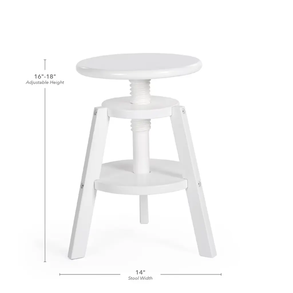 Guidecraft Adjustable Drafting Wooden Stool-white: Drafting Chair For Kids, 16in-18in | Toddler Swivel Stool For Kids' Art Studio, Classroom Seating