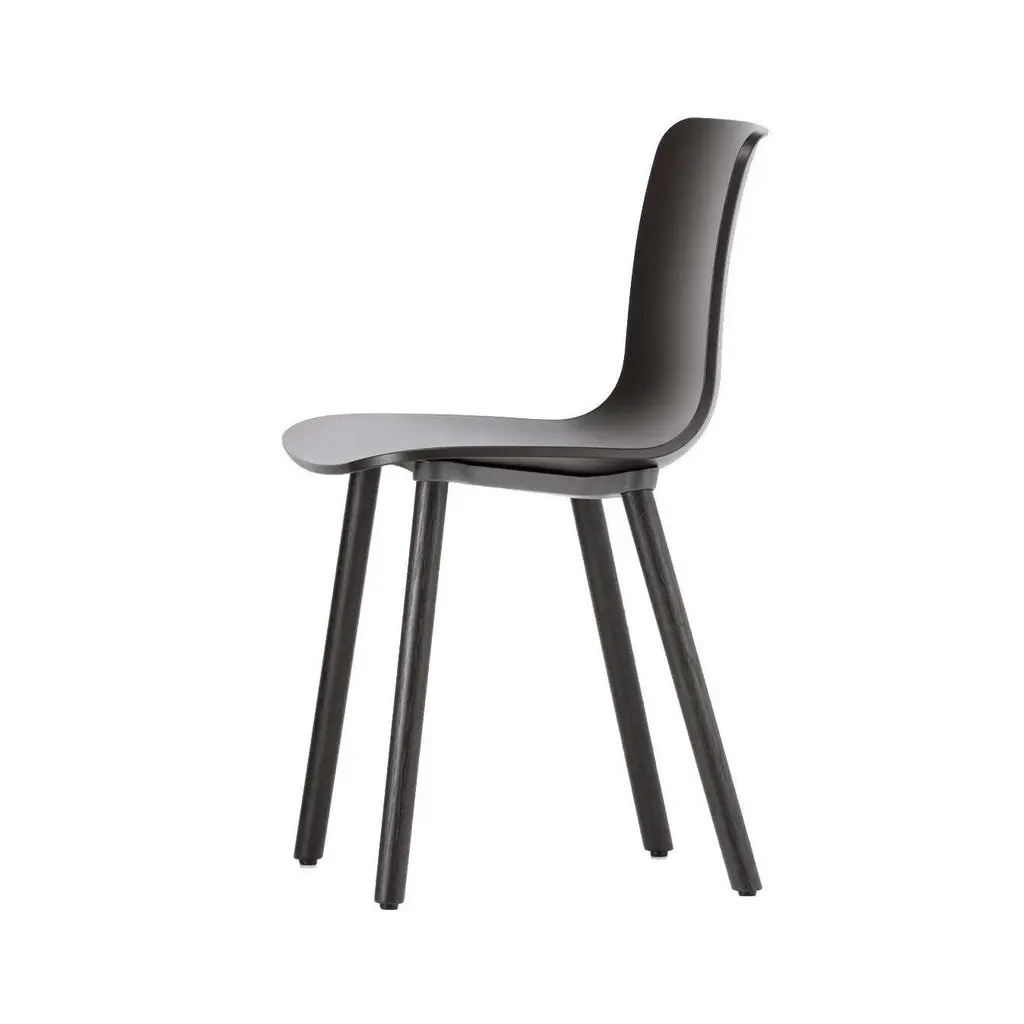 The HAL Wood chair by Jasper Morrison is part of the multifaceted HAL family. The striking combination of a plastic seat shell and four-legged wooden base lends the chair its unique character. The comfortable seat shell is available in a selection of colours, whilst the chair legs come in a choice of three high-quality woods. Please note: Color of glides are matched to the small attachment parts for the seat shell, with a choice of white or basic dark. All bases are fitted with glides for carpet; felt glides optionally available for hard floors.