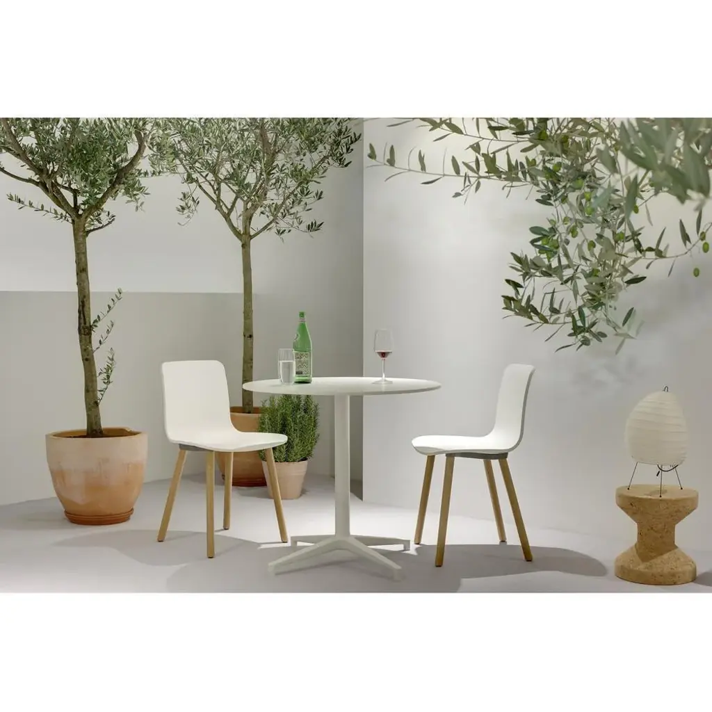 The HAL Wood chair by Jasper Morrison is part of the multifaceted HAL family. The striking combination of a plastic seat shell and four-legged wooden base lends the chair its unique character. The comfortable seat shell is available in a selection of colours, whilst the chair legs come in a choice of three high-quality woods. Please note: Color of glides are matched to the small attachment parts for the seat shell, with a choice of white or basic dark. All bases are fitted with glides for carpet; felt glides optionally available for hard floors.
