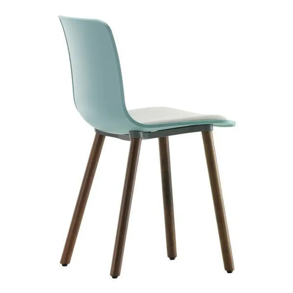 The HAL Wood chair by Jasper Morrison is part of the multifaceted HAL family. The striking combination of a plastic seat shell and four-legged wooden base lends the chair its unique character. The comfortable seat shell is available in a selection of colours, whilst the chair legs come in a choice of three high-quality woods. Please note: Color of glides are matched to the small attachment parts for the seat shell, with a choice of white or basic dark. Non stacking.