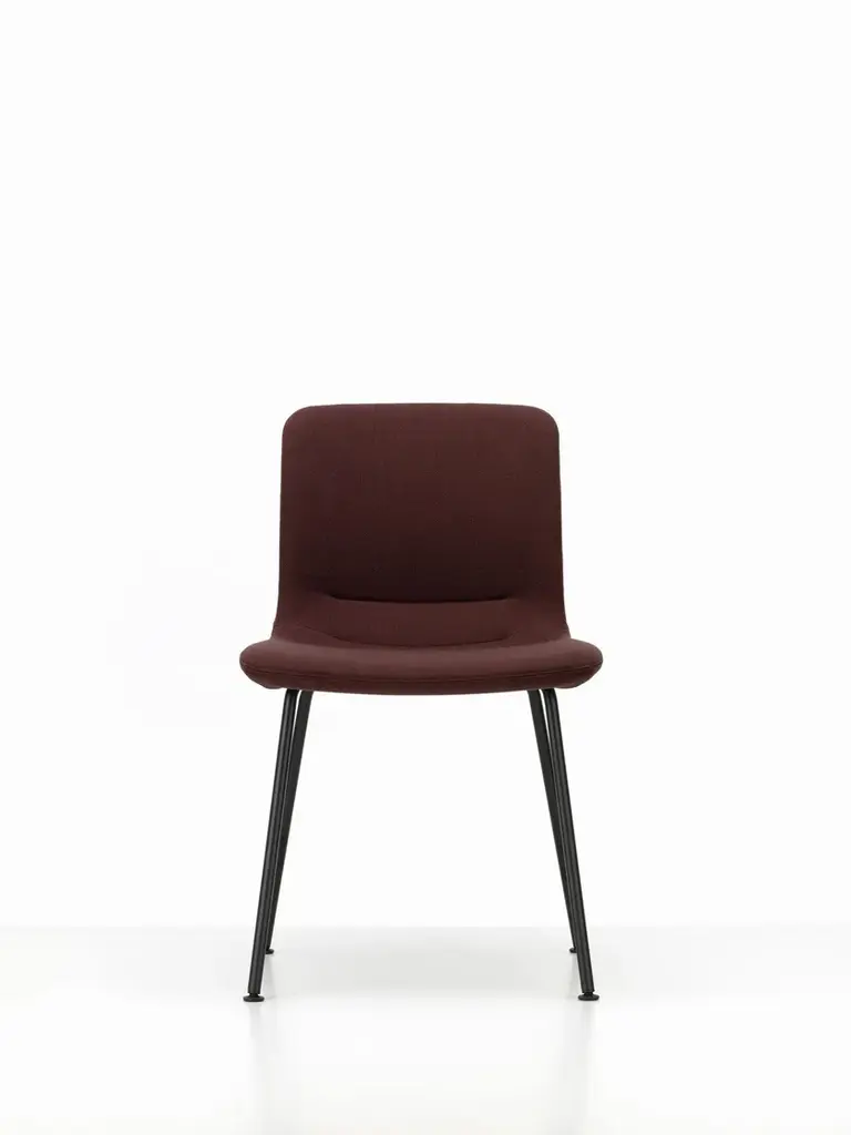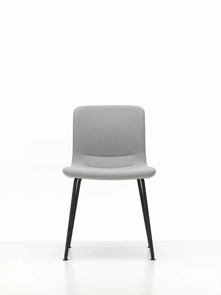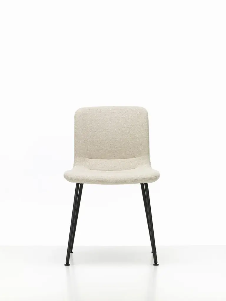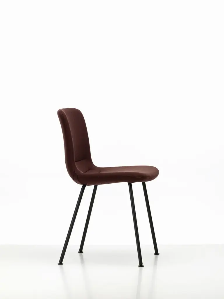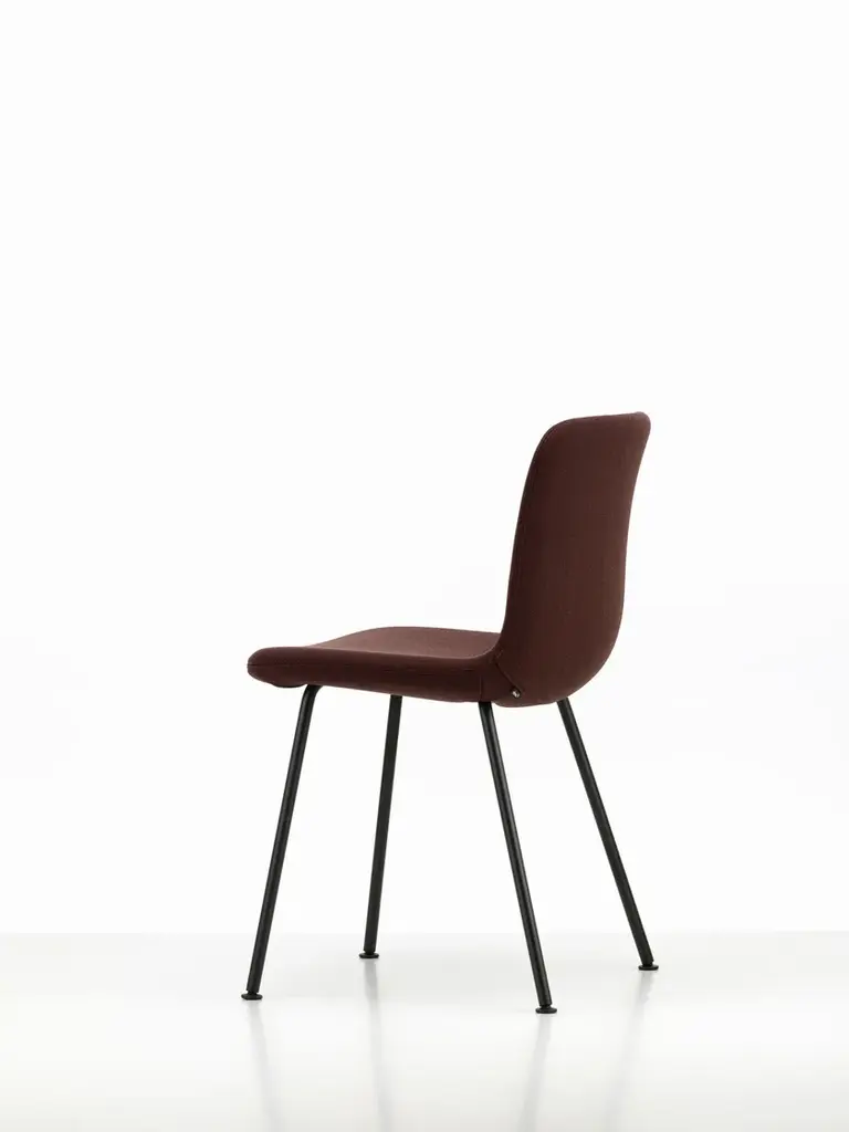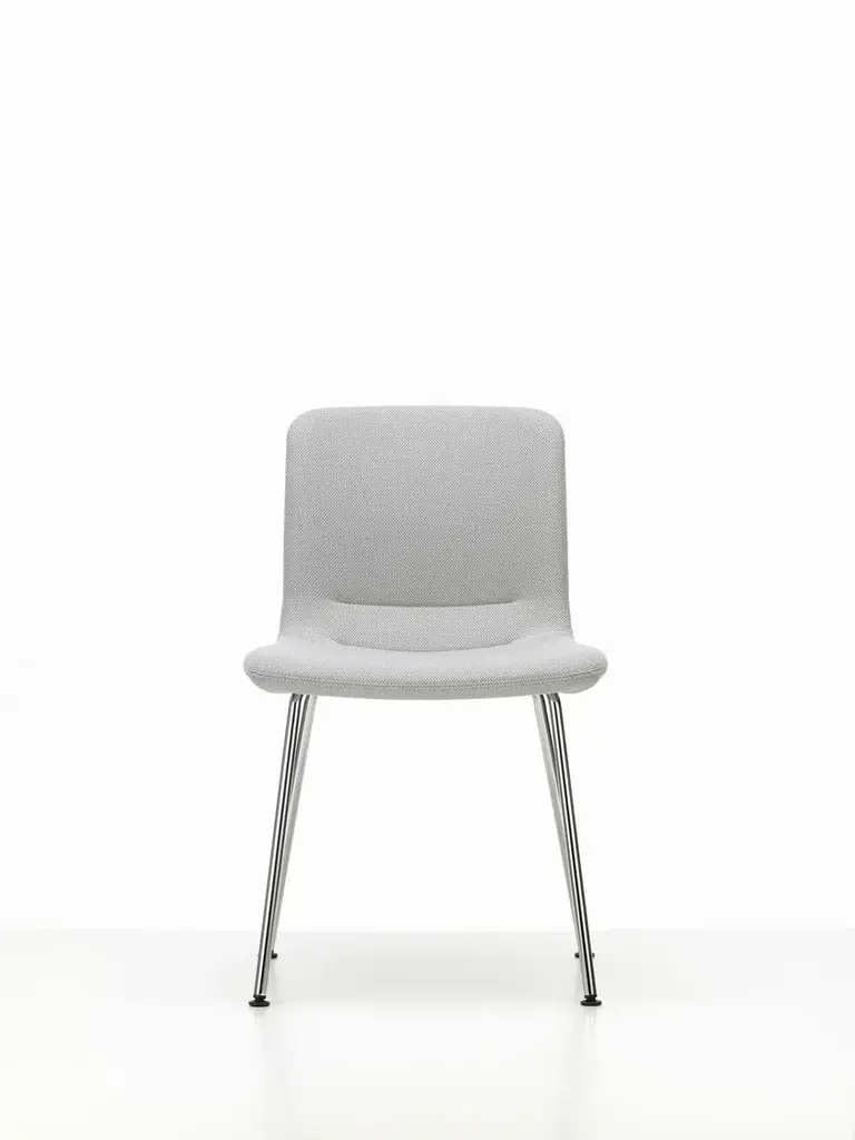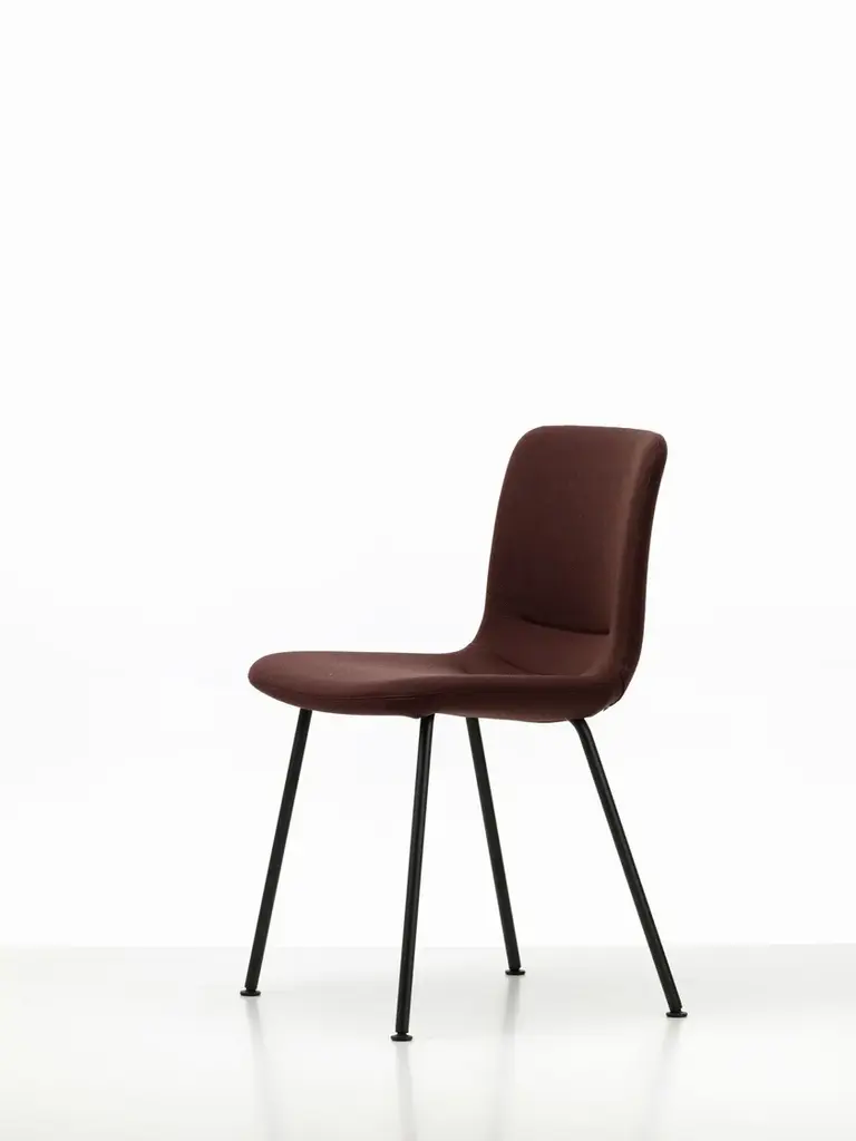 The padded upholstery of HAL Soft provides superb comfort, with rounded contours that soften the appearance of the characteristic HAL shell. Available in a chrome-plated or powder-coated finish, the tubular steel base gives HAL Soft Tube a light graceful appearance. The fabric cover can be removed and changed as needed.- Glides: colour matched to the small attachment parts for the seat shell, choice of white (except HAL Wood and HAL Ply Wood) or basic dark. All bases fitted with glides for carpet; felt glides optionally available for hard floors.- Seat shell: glass-fibre reinforced polyamide. Polyurethane foam padding, replaceable fabric cover (to be carried out by Vitra Service only).- Base: four-legged tubular steel base, chrome-plated finish or powder-coated in basic dark.