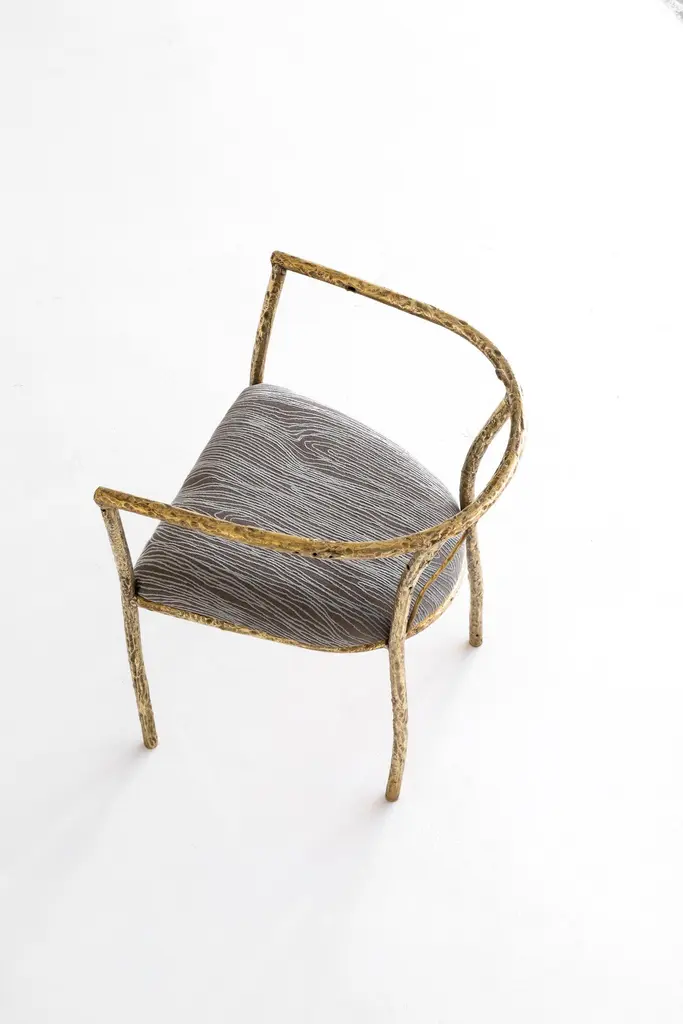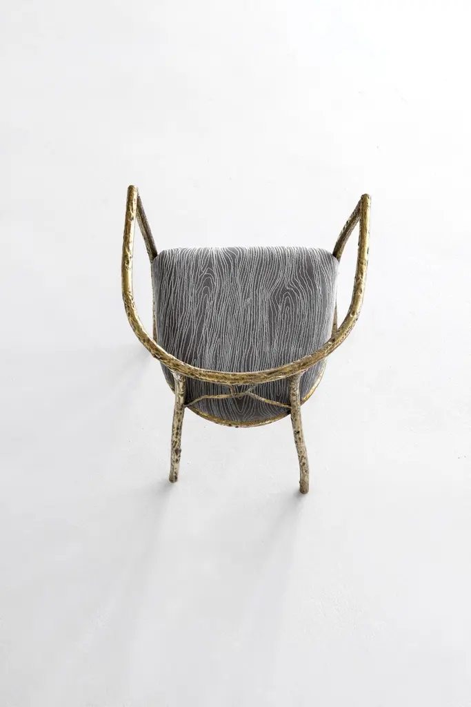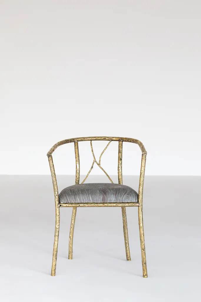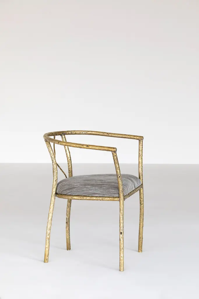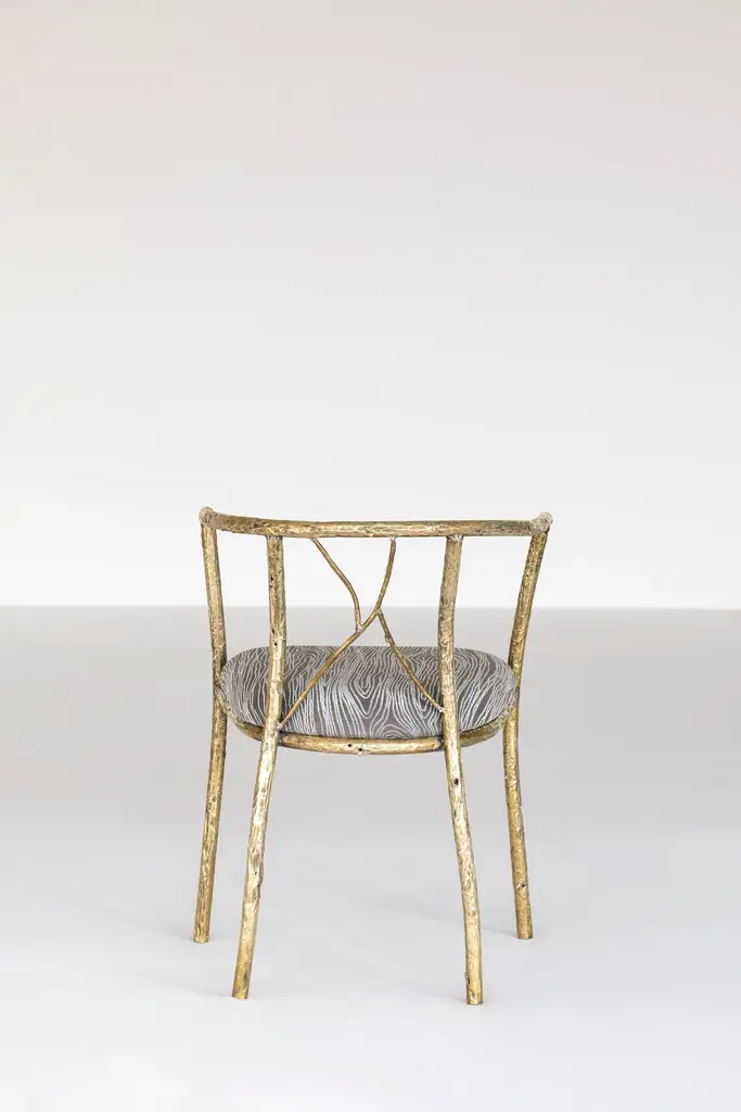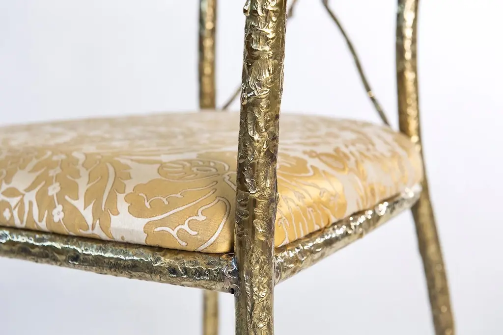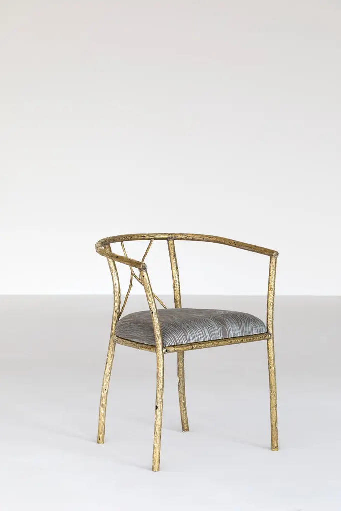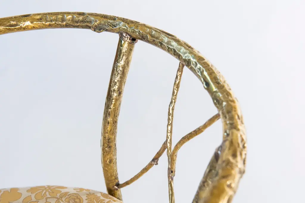Branches chair by Samuel CostantiniEntirely handmade by the artistEdition 12 + 1 APMeasures: W 50 x D 50 x H 75 cmMaterials: Curved brass, welded and worked on flame then polishedLike curved vine branches, the structure of the chair resembles their bark. Entirely made of curved brass, welded and worked on flame then polished.It is also possible to apply the upholstery chosen by the customer.Samuel ConstantiniThe ability to create objects lies in the tradition in our hands. In ancient times, they were our only means of realizing our thoughts. Artisan is the one with this ability to breathe life into the raw material. Since Samuel Constantin was a young boy has tried to create the objects of his imagination. He has always believed when you make an object you have created yourself it is possible to bequeath something to that object and that my thoughts can be passed on via my hands.Metal is one of those materials which more than others allows you to give shape to ideas.Connection with the elements is basic when it comes to my objects being born. The principle element is earth, from which metal originates. The natural world around us is a source of inspiration for new techniques and new objects to be shaped. The earth has, over the centuries, already sculptured the most beautiful works of art. The second element is fire which governs metal. Over time he has come to understand that fire is never my servant. You can think that you dominate it, but in reality you never have full control over it. So fire contributes to the creation of objects as if it were a co-artist.The concept of the elements, the link with the territory, the precious metals often obtained from recycled materials, techniques from the past and the search for new ones give the creation all the subtleties it requires. This is the essence of Samuel Constantini's creations.After years of bringing to life the ideas of others, it is now time also to realize our own, giving hands and minds the freedom to experiment and create. There is no production line: every creation is made by hand and exclusively to order, and this enhances the individuality of the pieces, which are all numbered to make each one unique.