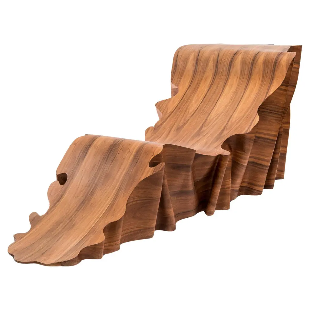 This Handmade Functional Sculptural Parametric Teak Sun Chair by John Brevard is 1 of a series of 25 pieces in the collection. Unlike other contemporary pieces, this piece is hand made and carries the wear and form of a handmade piece. These pieces are all customized and made to order with a turn around time of 2-4 months. This piece can be customized and ordered in different finishes and sizes.About the Designer:John Brevard applies his background in architecture and multidisciplinary arts to create ethereal designs that are not only visually stunning but also conceptually powerful. Inspired by the principles of natural order, each creation is symbolic of the inseparable relationship of the part to the whole.After a near death experience, Brevard developed a fascination with proportions and patterns found in nature and theoretical sciences, namely sacred geometry and phenomenology. Brevard manifests this vision through an experience, which encompasses and merges design, fashion, architecture, and technology for an integrated new world.Fabri:The Fabri collection features fabric-like weaving landscapes which unite to become one.