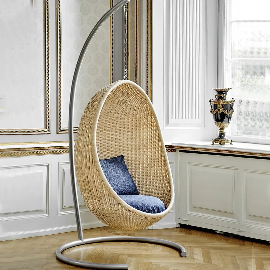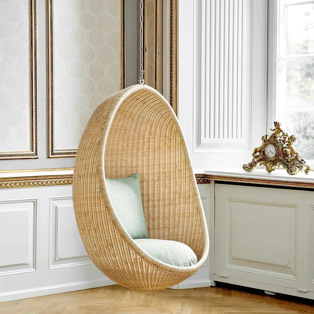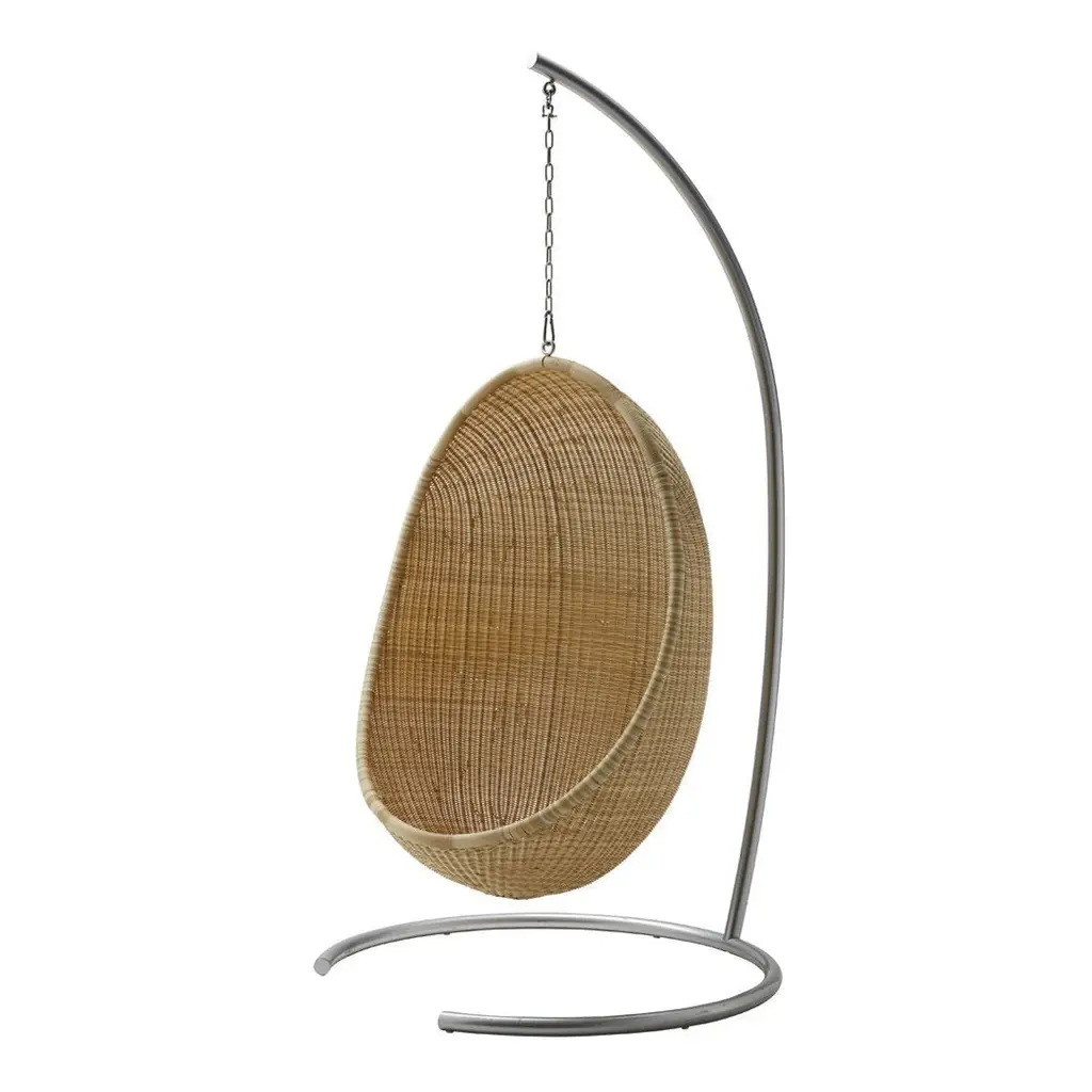 Most of us are familiar with the iconic design of the egg shaped chair floating in the air. The Hanging Egg Chair is a critically acclaimed design that has enjoyed praise worldwide ever since the distinctive sculptural shape was created by Nanna & Jørgen Ditzel in 1959. The design of the Hanging Egg Chair has long since been dubbed timeless whereas the material rattan had its golden age in the 1960s when skilled wicker makers and architects crafted beautifully sculptured furniture out of the challenging material. However, at the moment rattan is becoming more and more popular concurrent with consumer demands for sustainable products. This demand can be met by Sika-Design, who has continued to produce rattan furniture since 1942. Note: The Hanging Egg Chair can hold up to 450 lbs.