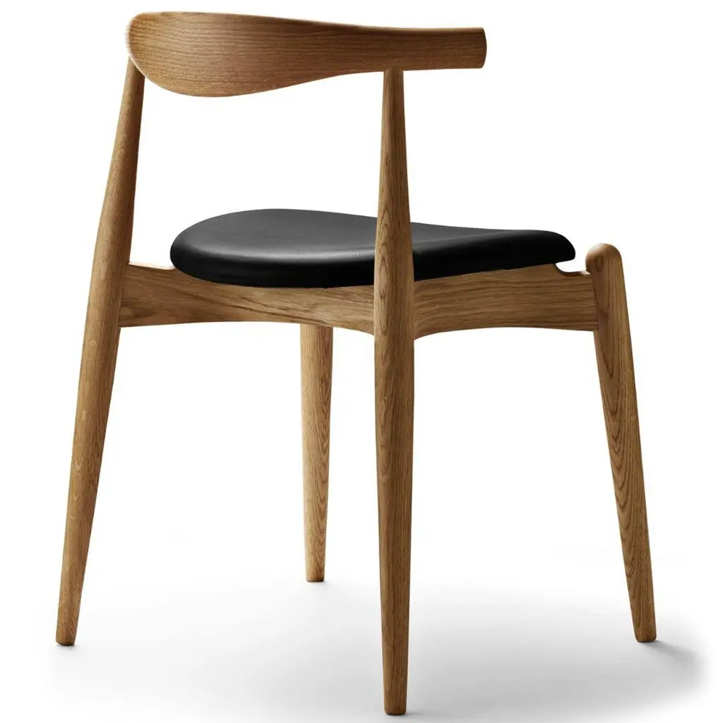Hans J. Wegner 'CH20' Chair in Oak, Black Leather & Oil for Carl Hansen & SonThe story of Danish Modern begins in 1908 when Carl Hansen opened his first workshop. His firm commitment to beauty, comfort, refinement, and craftsmanship is evident in iconic pieces designed by such legends as Hans J. Wegner, Arne Jacobsen, Kaare Klint, Poul Kjærholm, Vilhelm Lauritzen and others. Now in its third generation as a family run business, Carl Hansen & Son maintains its legacy through skillful work with the highest quality materials, sustainably producing Danish design classics by past icons and influential new designers.Originally designed in 1956 by legendary creator Hans J. Wegner, the 'CH20' stackable chair was set aside for 50 years before CHS first produced this award-winning modern classic in 2005. Featuring a distinct steam-bent backrest, crafted from a single piece of solid wood, the 'CH20' affords elbow and lower back support from a variety of seated positions while simultaneously creating a floating expression courtesy of the chair's unique rail construction beneath the seat. The completed design highlights the core of Wegner's legacy, showcasing the inner soul of furniture pieces through a simple and functional exterior. Executed in FSC certified wood, natural grain semi-aniline leather and an oil finish.Price per item. Available in unlimited quantities in choice of oak or beech wood, with finishes in soap, lacquer, oil or white oil as well as choices of fabric and leather. This listing is for the 'CH20' chair in oak, with oil finish and black Thor 301 leather. In stock lead time 7-8 weeks, out of stock lead times can add an additional 8 weeks or more. Please note that lead times and inventory availability are subject to change without notice and dependent on choice of wood, finish and material ordered. For time sensitive orders, please contact us for current lead times prior to purchasing. Made to order. All sales are final.