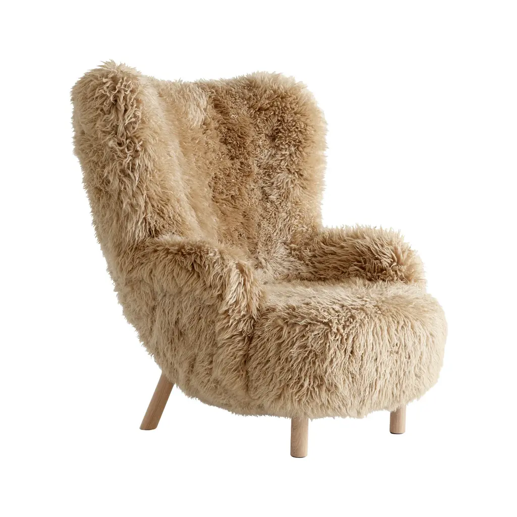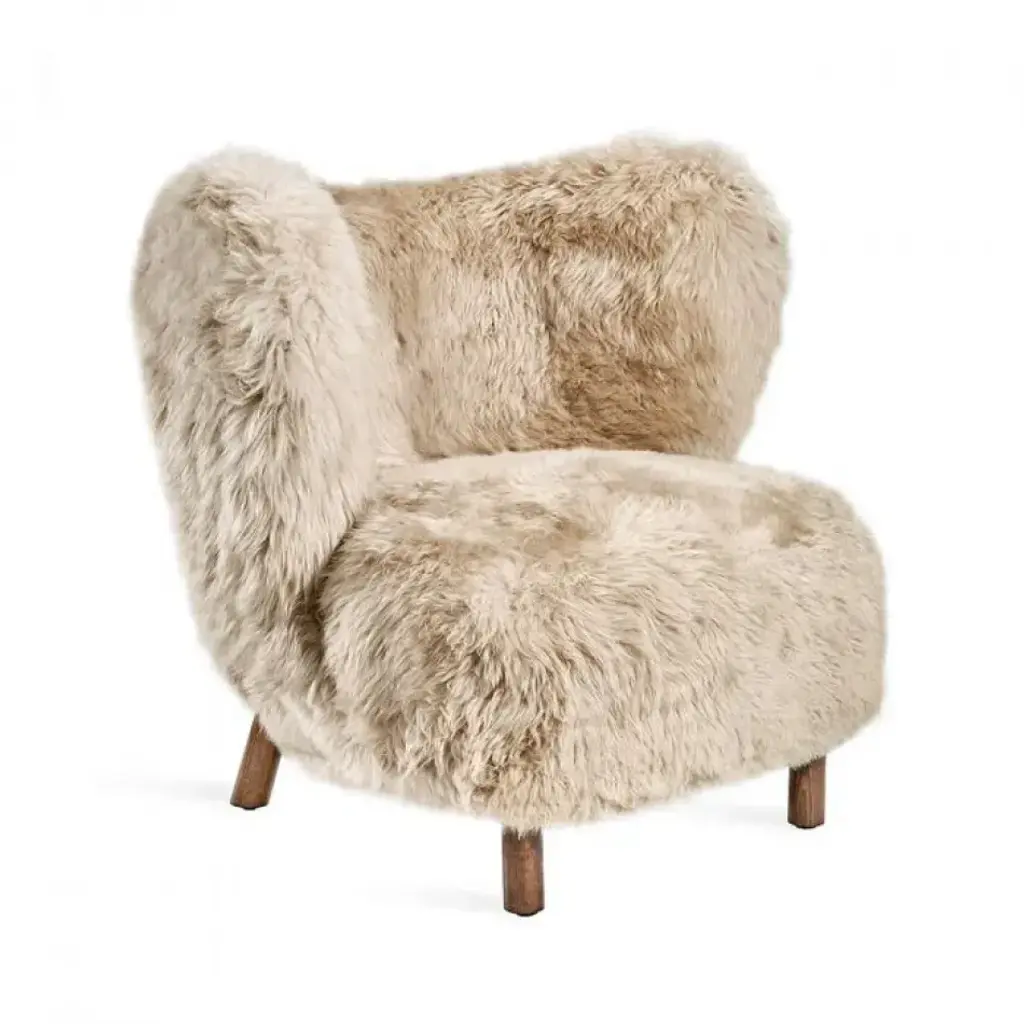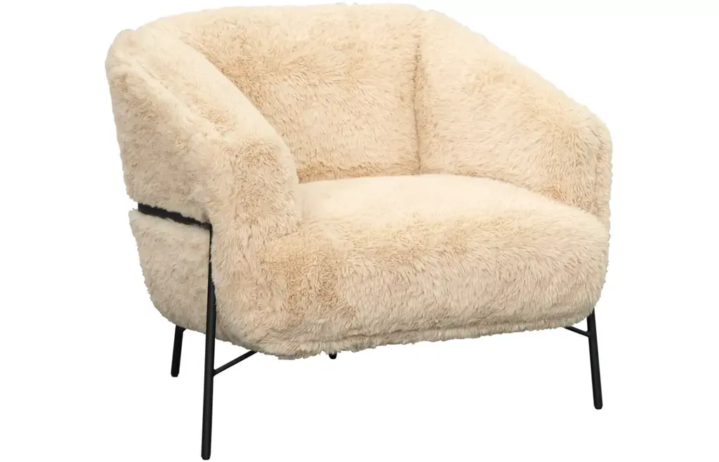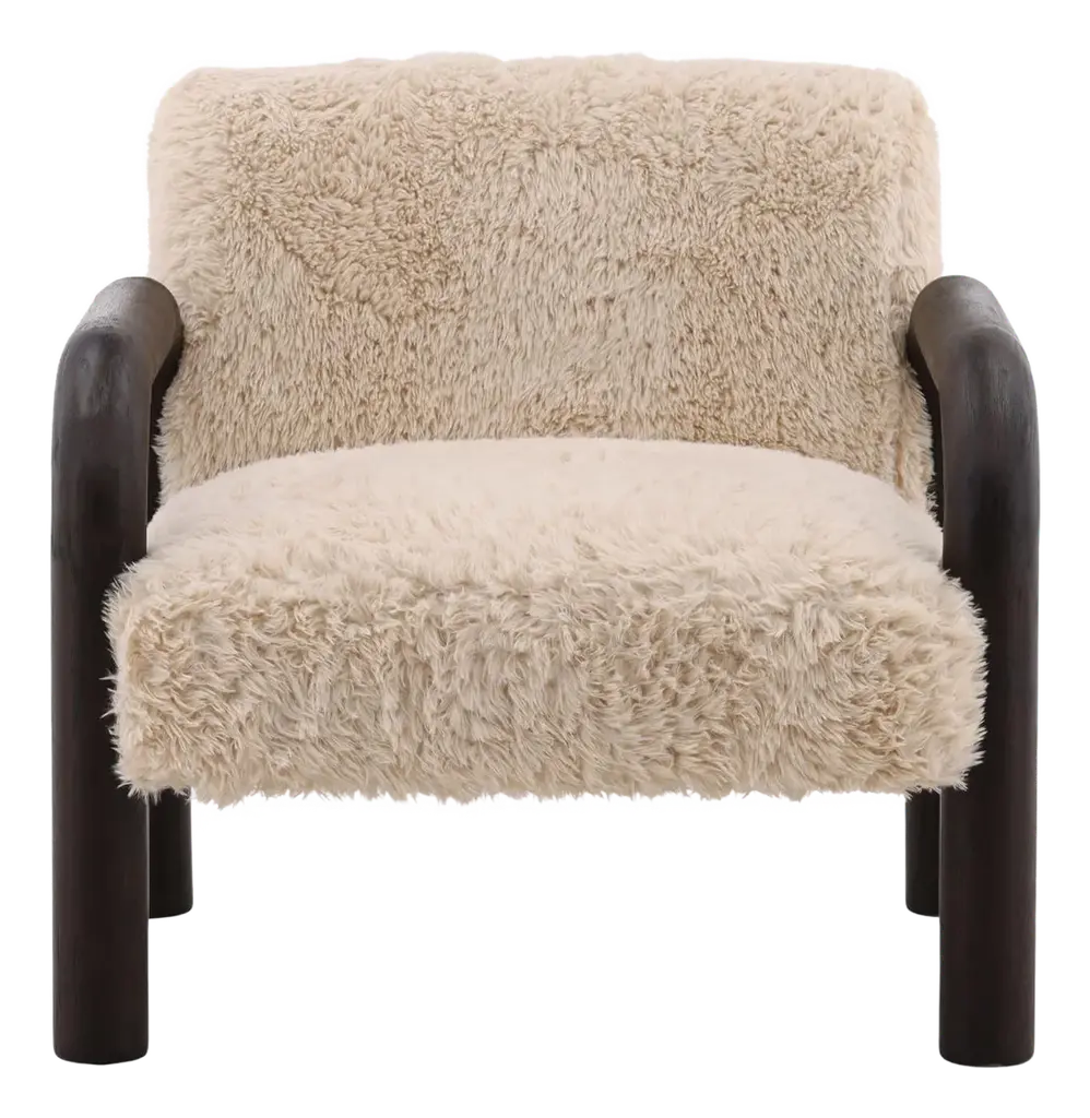 The industrial vibe of black iron contrasts with the luxurious softness of morel taupe Tibetan lambskin in the form of the inviting Harpo Chair. This item is genuine sheepskin. Subtle variations in coloration are to be expected and add to the uniqueness and charm of each piece.