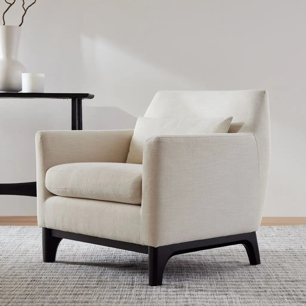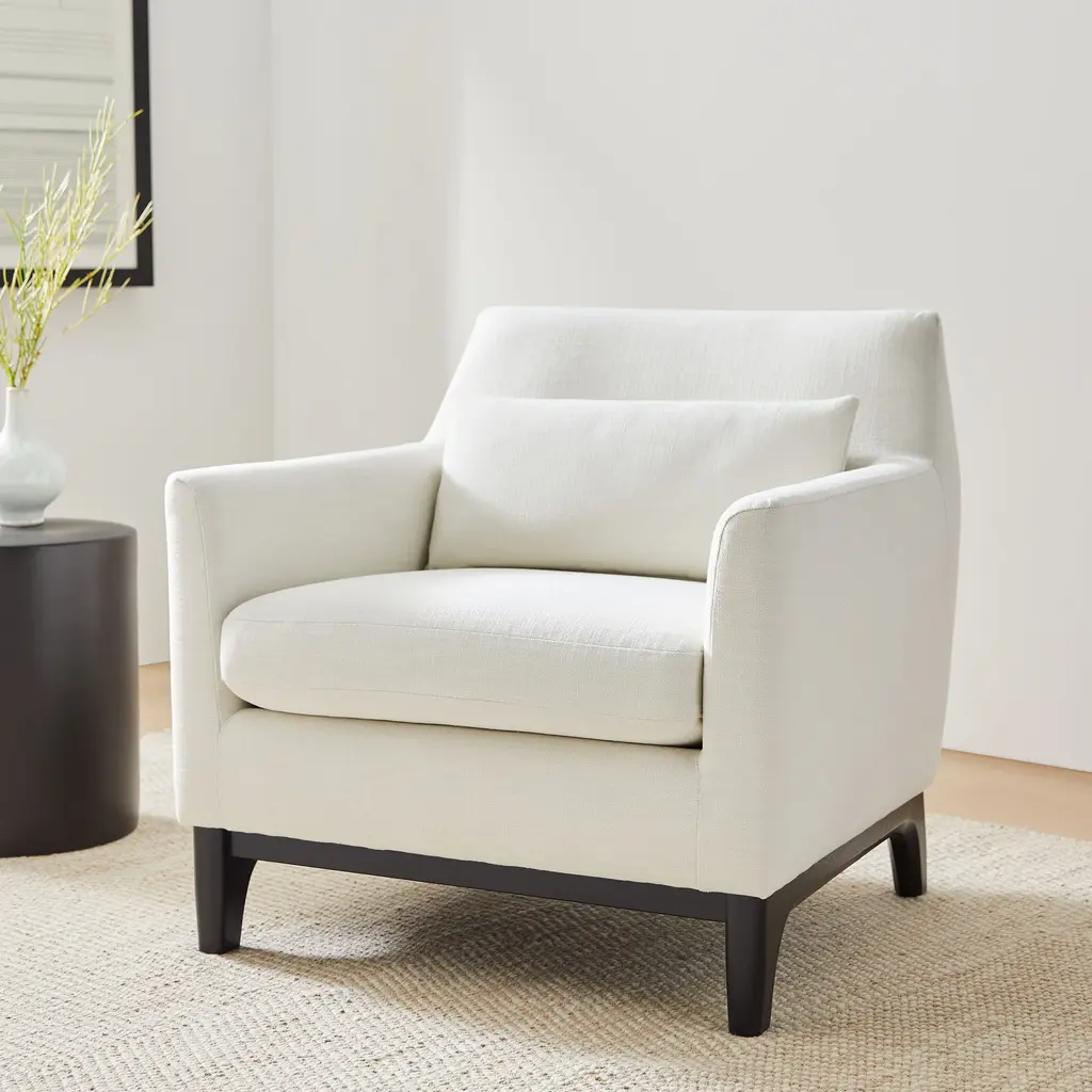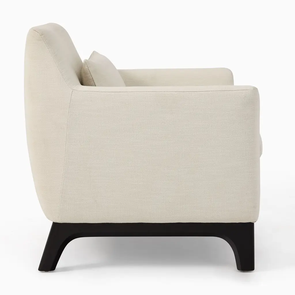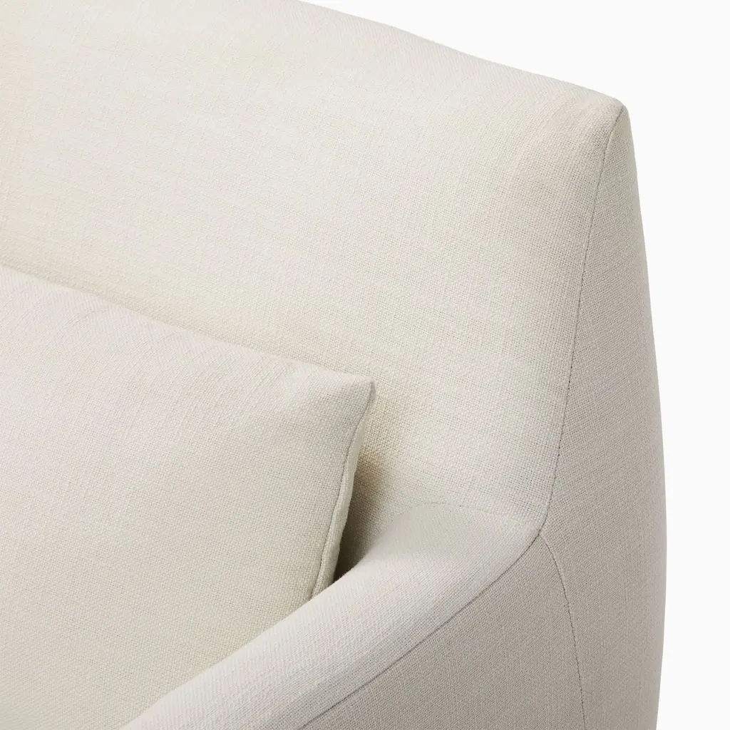 Anchored by a modern shaped wood base. Sleek track arms for a clean, tailored look. Deep, plush seat invites you to curl up. Contract Grade for unmatched durability.