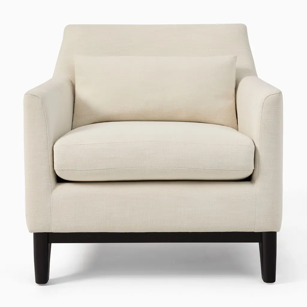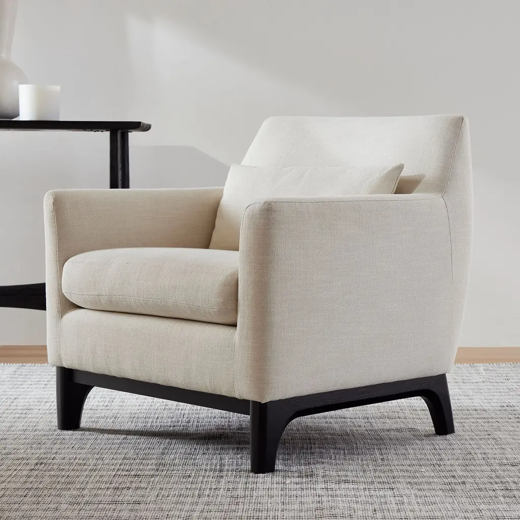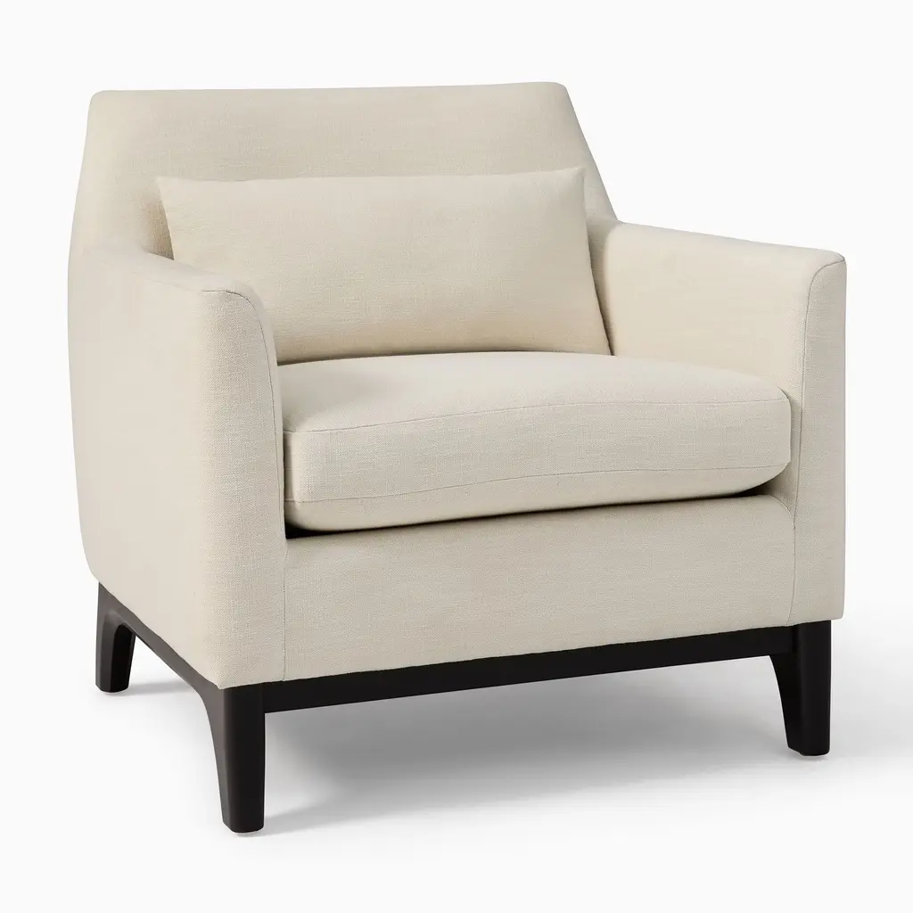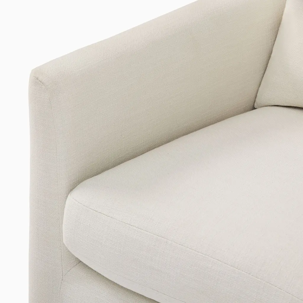 Anchored by a modern shaped wood base. Sleek track arms for a clean, tailored look. Deep, plush seat invites you to curl up. Contract Grade for unmatched durability.