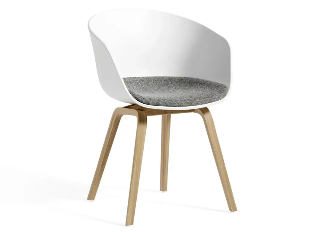 The About A Chair AAC 22 design exudes the functional simplicity that is characteristic of this entire series. The solid shell comprises a curved back with armrests in polypropylene, providing excellent comfort and a soft, unified silhouette, while the four-legged wooden base adds a timeless, classic expression, ensuring greater stability and a longer lifetime. Injection moulded solid coloured polypropylene shell. Shell thickness: 10 mm. Matt slightly textured surface.Moulded plywood base. Inner plywood in beech, top veneer in oak. Not stackable.Base finishes: Soaped oak