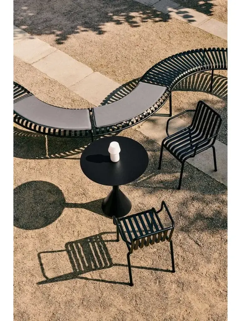 Designed by French brothers Ronan and Erwan Bouroullec, Palissade is a collection of outdoor furniture for HAY in powder coated or hot galvanised steel. United by a common principle of symmetrical geometry, the Palissade collection is engineered to reproduce the same visual simplicity and core strength throughout. Designed in colour and form to integrate effortlessly into a natural landscape or urban setting, Palissade is intended to be used over a longer period of time and become more beautiful over the years. The collection is suited to a wide variety of environments, from cafés and restaurants to gardens, terraces and balconies.Powder coated steel or hot galvanised steel. The products in the Palissade Collection have a two component coating; a primer and an outdoor powder coating which provides a barrier to corrosive elements making it suitable for outdoor use.COLOUR & FINISHAnthracite powder coated steel (RAL 9011)