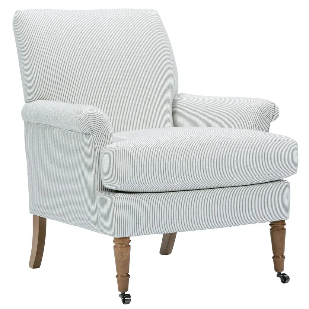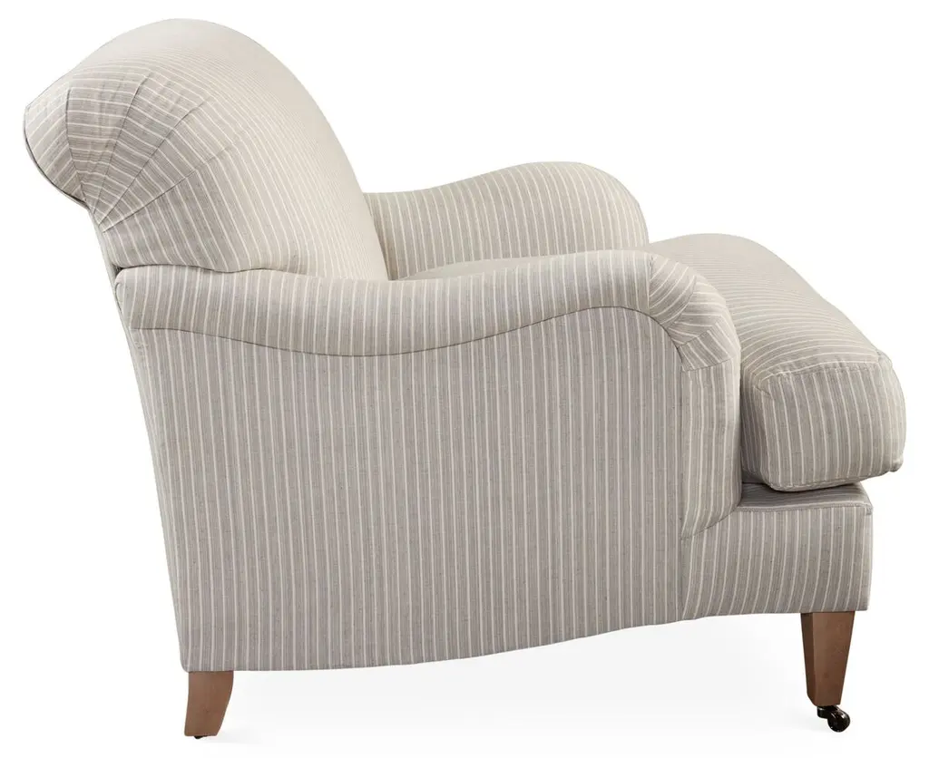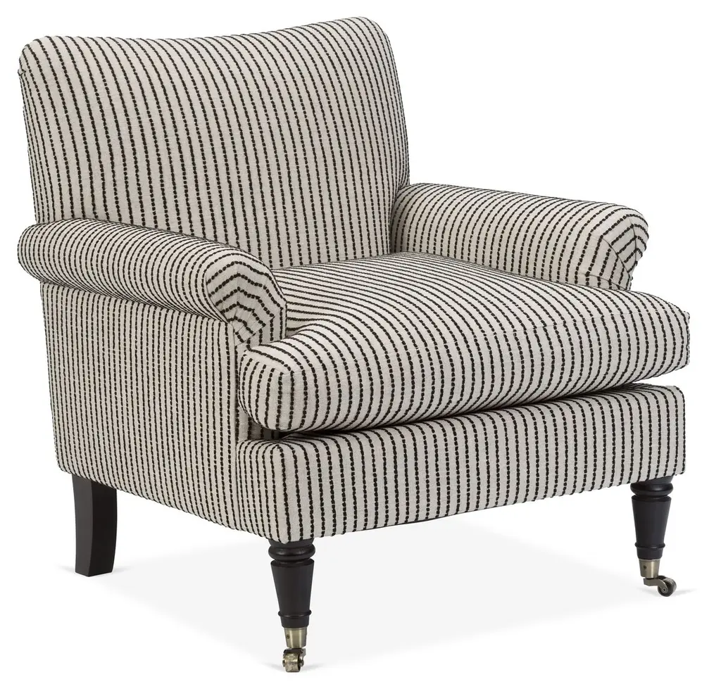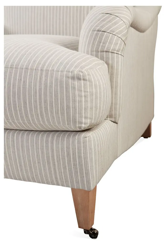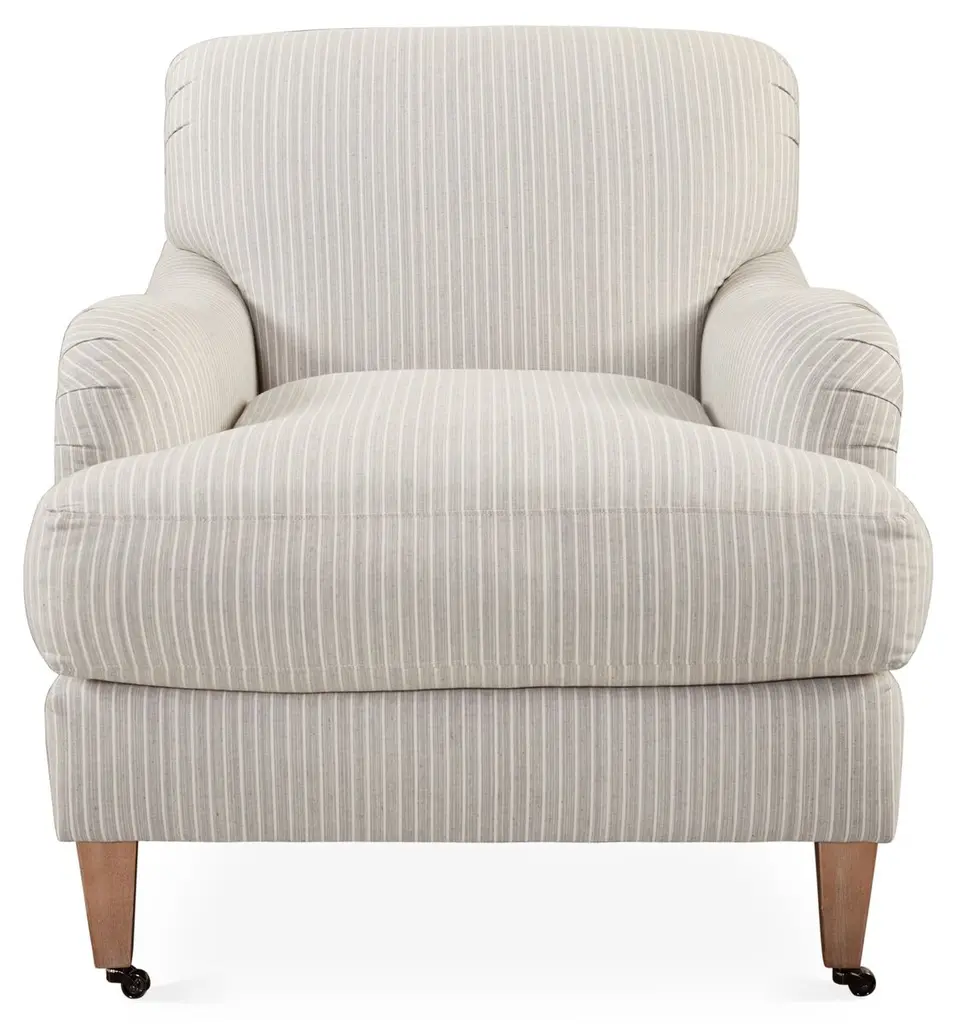 Available only at One Kings Lane: With a kiln-dried hardwood frame, neatly tailored upholstery, and English arms, this club chair makes an elegant addition to your space. A feather-and-down fill ensures long-lasting comfort and support, while casters on the two front legs allow for easy mobility and help protect floors against scratching and marring. Handcrafted in the USA.