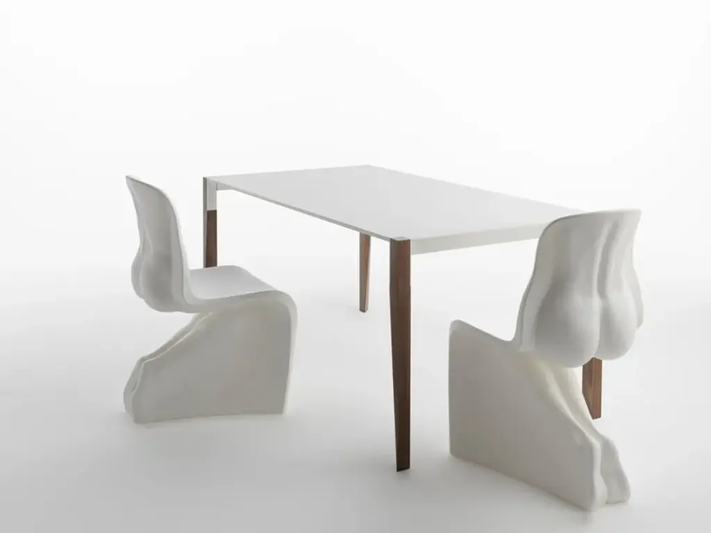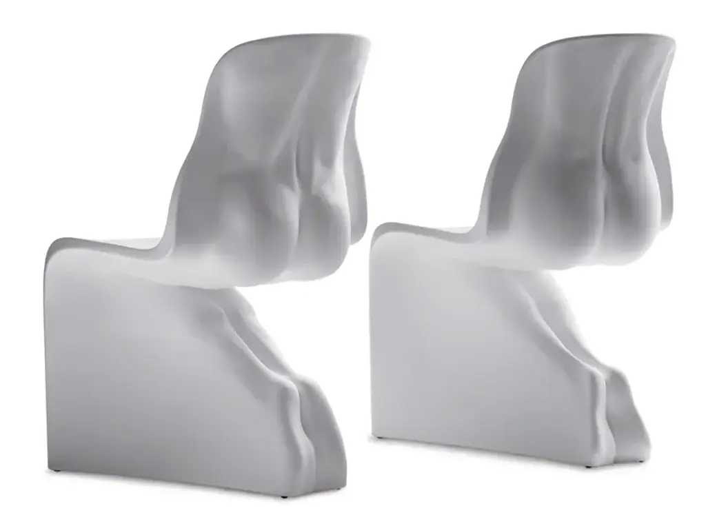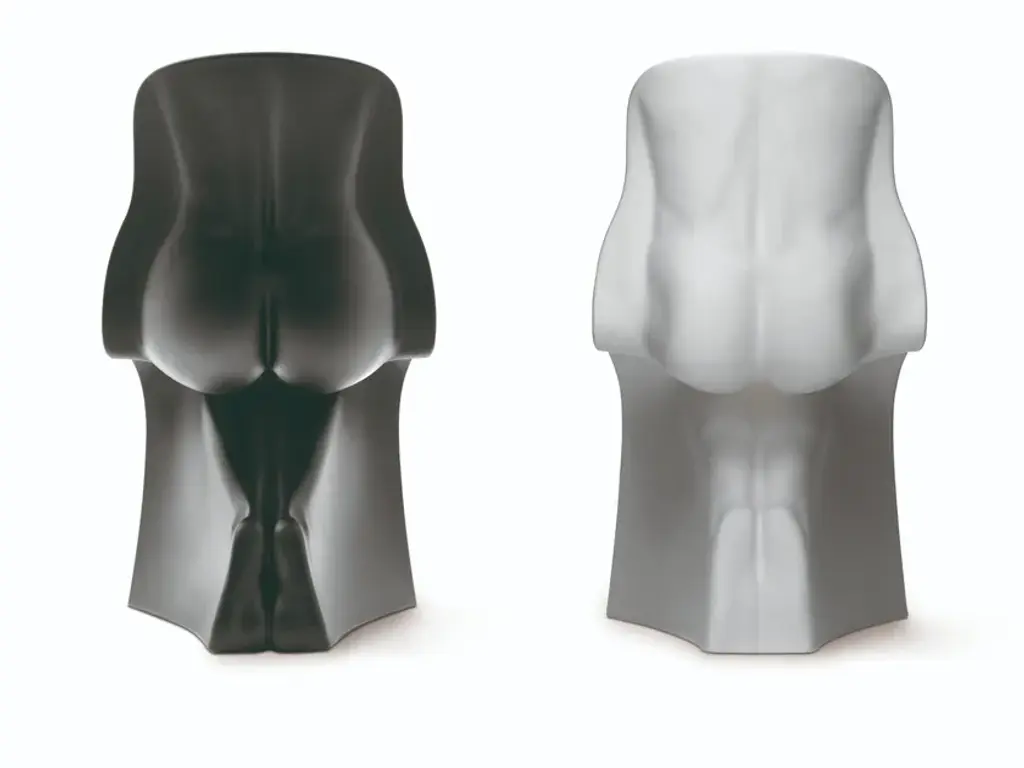 Her is a Chair in dyed-through matt polyethylene.“Him & Her are born directly from the ideas behind the Panton Chair. An evolution of the hermaphroditic original, declined into the harmony of the two sexes. They assume sculpted forms like naked models of seduction but they are not ashamed.” Cit. Fabio NovembreChairs crafted from rotationally mass-dyed moulded polyethylene. Their shape derives from the three-dimensional scanning of two plaster sculptures.