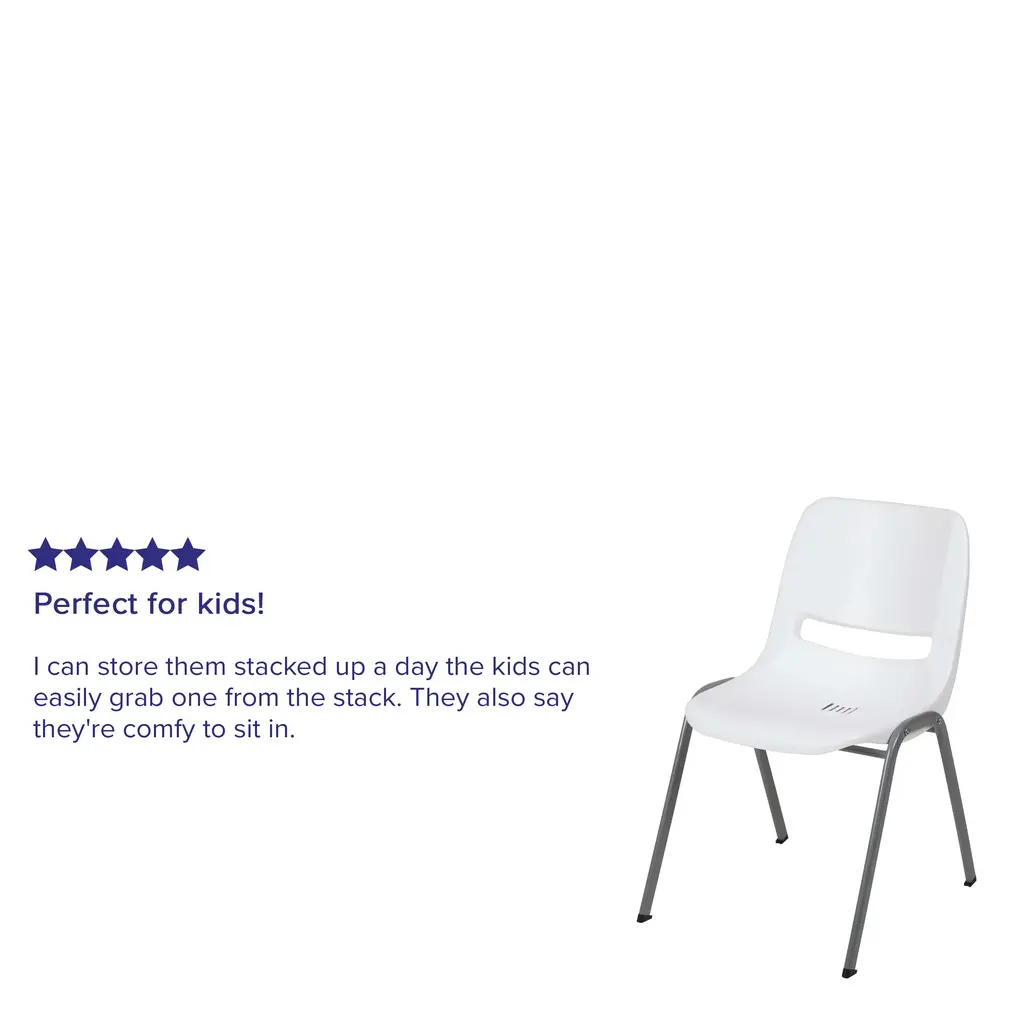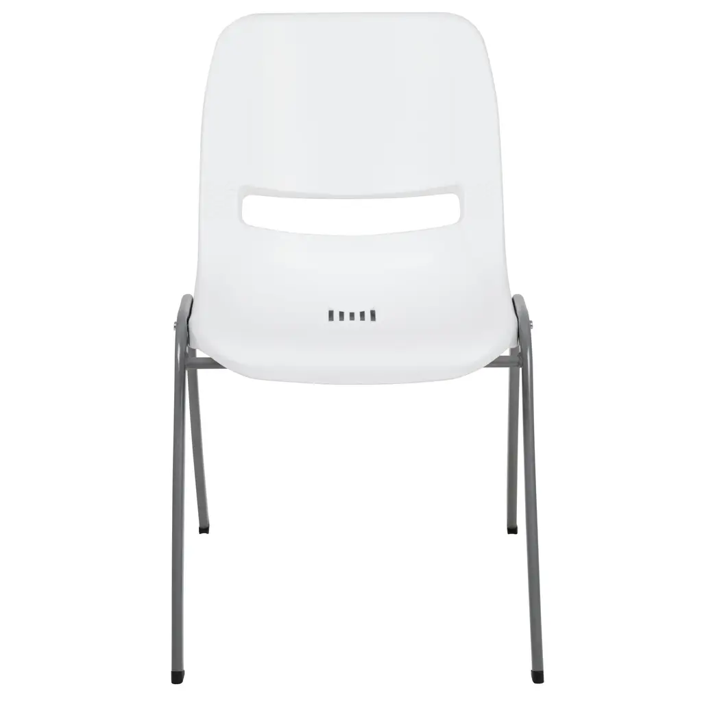 Students sit most of the day, provide comfortable seating in your classroom or training room with these popular ergonomic plastic stack chairs. These student stack chairs are favorable in classrooms due to their ergonomic seat shell and lightweight design to move easily around the classroom. The ergonomic comfort-formed shell has a waterfall edge to reduce leg pressure and an air-vented lower back. Plastic chairs are easy to clean for high traffic environments. Spills in the seat drain through the drain holes to prevent water pooling. These stackable school chairs may be used outdoors for school events, protect the chairs from wet weather. We consider this student stack chair to be the premier stack chair - essential for every school and classroom setting. After parent-teacher conferences or school events these chairs stack neatly up to 20 high and can be transported on our steel stack chair dolly.