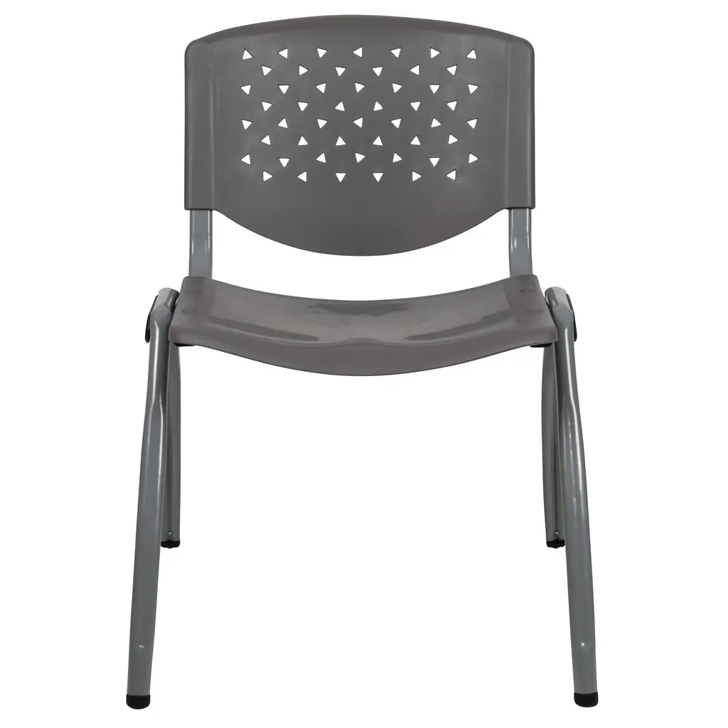 When you need to seat guests in your hair salon, barbershop, tire or body shop this plastic stack chair will bring comfort to guests waiting for service. Guests will love the wider seat design that is curved for comfort. The innovative ergonomic design provides angled seating for your visitor's to comfortably recline while reading a book or scrolling through their phone. Setup training rooms using stackable plastic chairs to be placed around training tables. When you arrange for guest speakers in your classroom or community center, place several plastic chairs in a row. The stacking chair features a perforated back, textured seat to sit safely and a powder coated metal frame that holds up to 880 pounds. Whether you need to furnish a small or large business there's no job that this heavy-duty plastic guest chair won't be able to handle. These plastic stack chairs stack up to 25 chairs high and can be transported across the facility on our steel stack chair and church chair dolly.