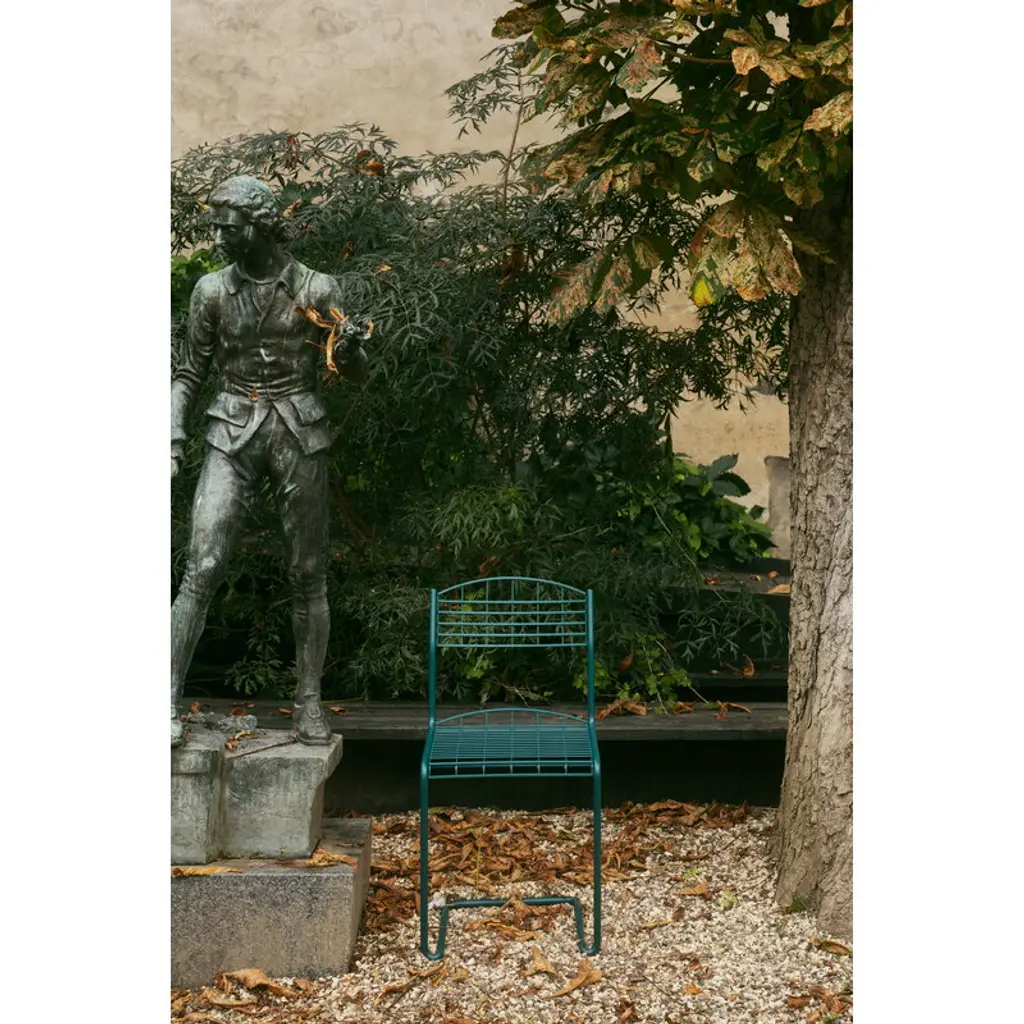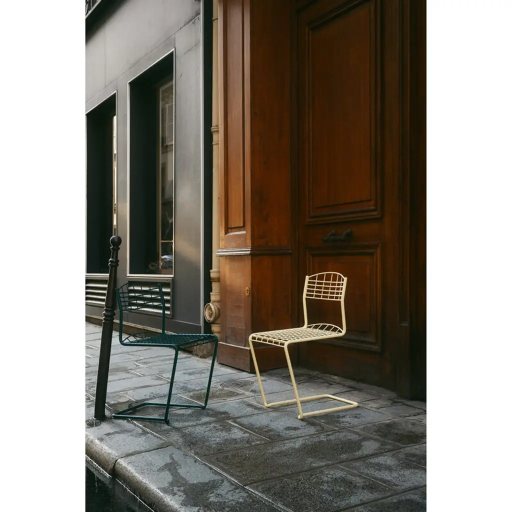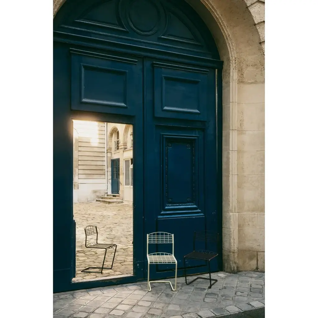 Grythyttan Stålmöbler's High Tech Chair, designed by Nils "Nisse" Strinning, is a minimalist, stackable steel chair suitable for both indoor spaces and outdoor use. The High Tech Chair features a steel wire seat and a slender bent steel tube structure that provides a comfortable, gently rocking seating experience. This distinctive steel base is a recurring feature in many of Grythyttan Stålmöbler's chairs. Launched in 1984, the High Tech Chair is part of Nisse Strinning's furniture collection that draws inspiration from the traditions of futuristic and industrial design. The hardwearing steel structure has made the High Tech collection especially popular in outdoor use, but the pieces have later gained popularity in indoor spaces as well. The products are made at Grythyttan Stålmöbler's factory in Sweden.