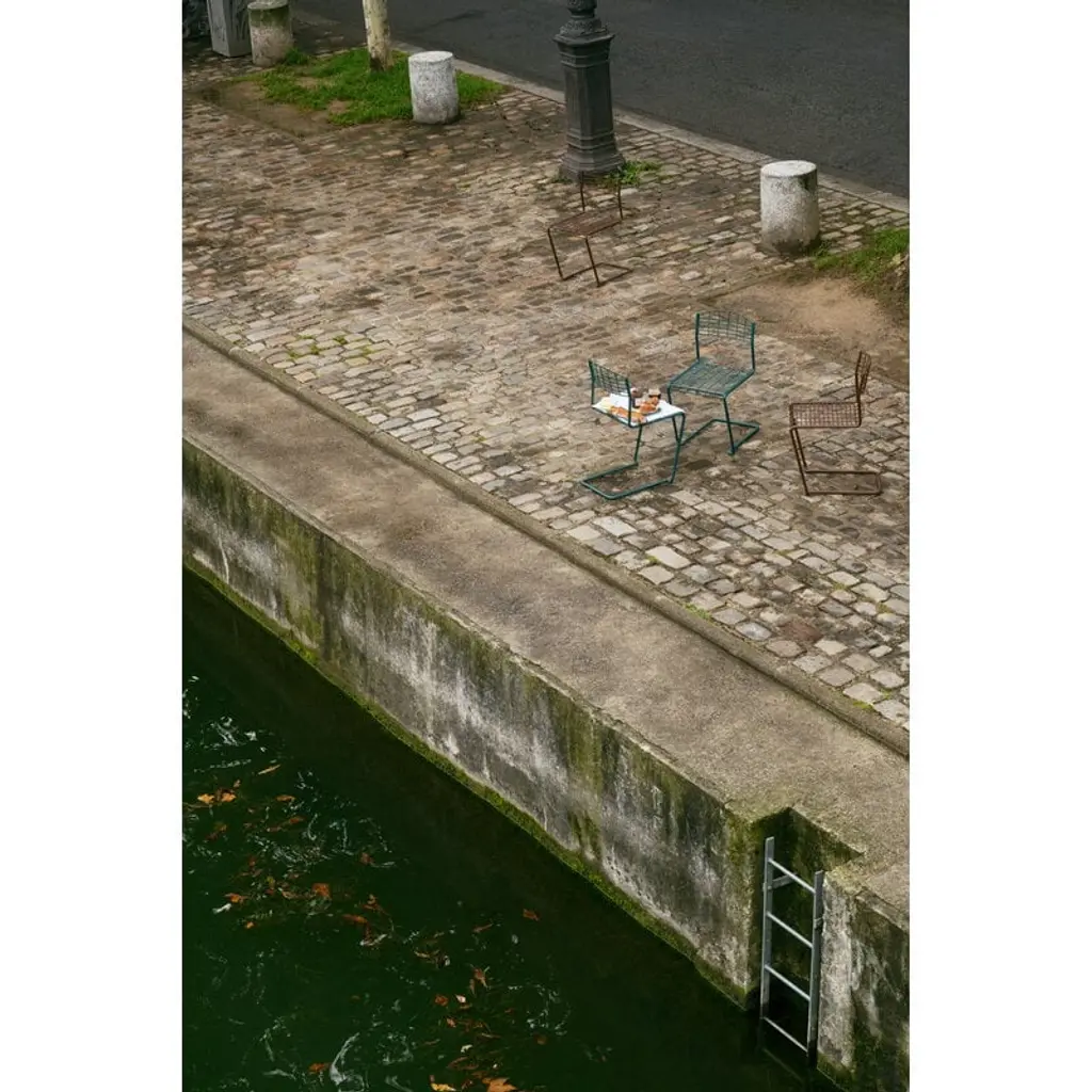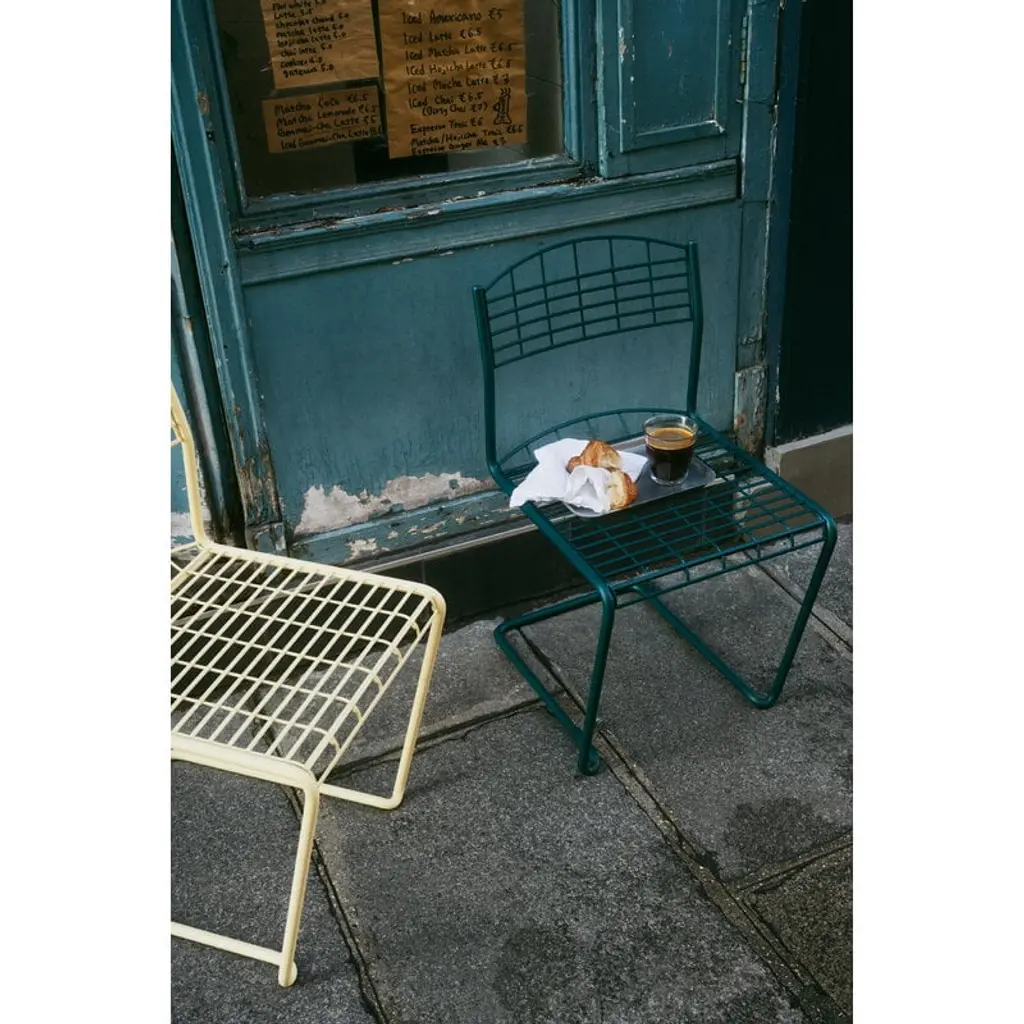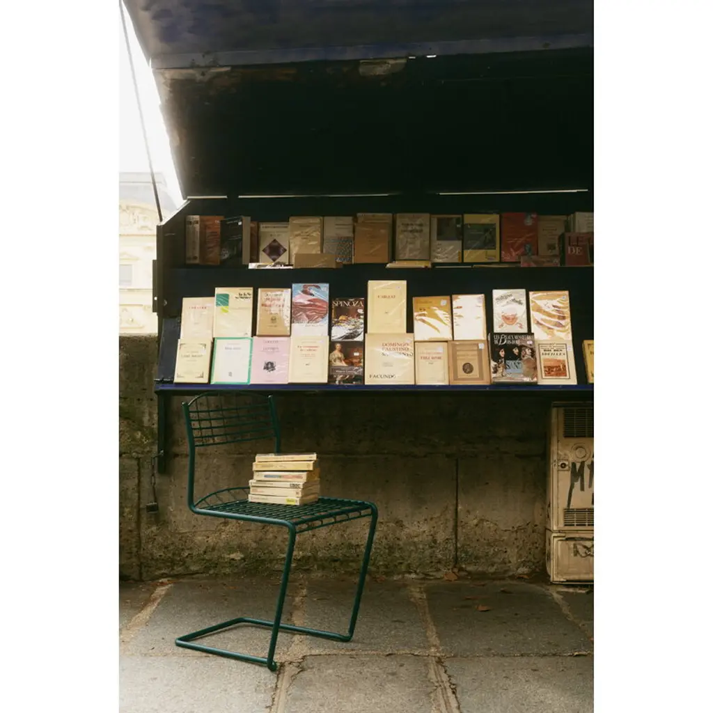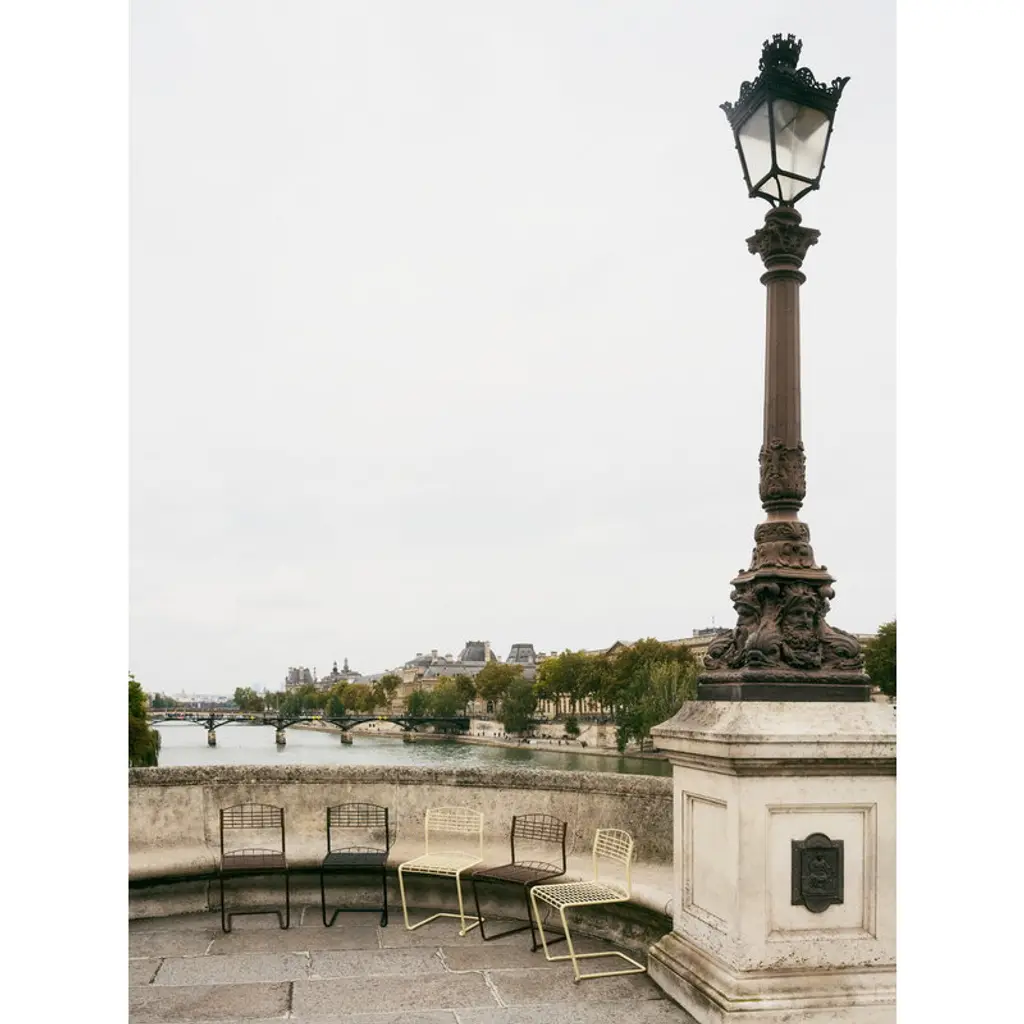 Grythyttan Stålmöbler's High Tech Chair, designed by Nils "Nisse" Strinning, is a minimalist, stackable steel chair suitable for both indoor spaces and outdoor use. The High Tech Chair features a steel wire seat and a slender bent steel tube structure that provides a comfortable, gently rocking seating experience. This distinctive steel base is a recurring feature in many of Grythyttan Stålmöbler's chairs. Launched in 1984, the High Tech Chair is part of Nisse Strinning's furniture collection that draws inspiration from the traditions of futuristic and industrial design. The hardwearing steel structure has made the High Tech collection especially popular in outdoor use, but the pieces have later gained popularity in indoor spaces as well. The products are made at Grythyttan Stålmöbler's factory in Sweden.