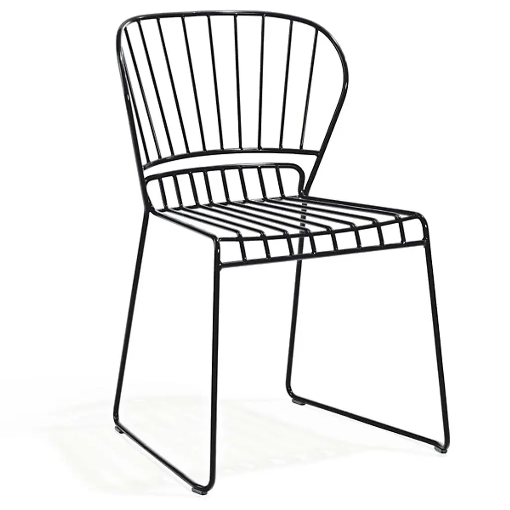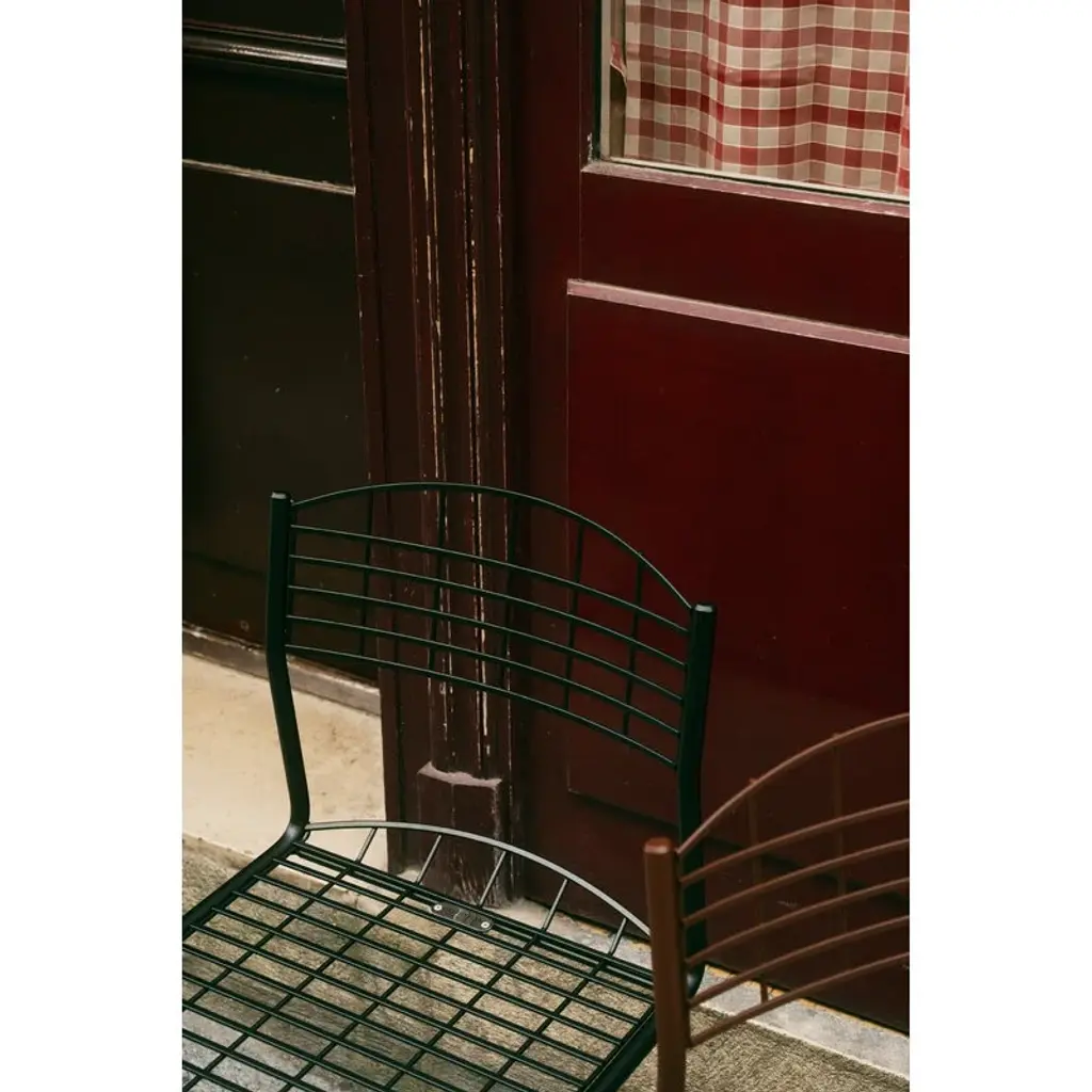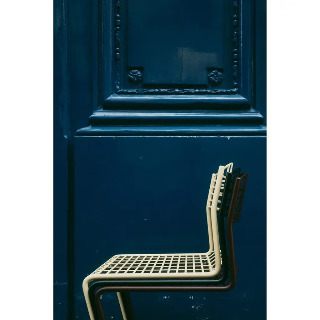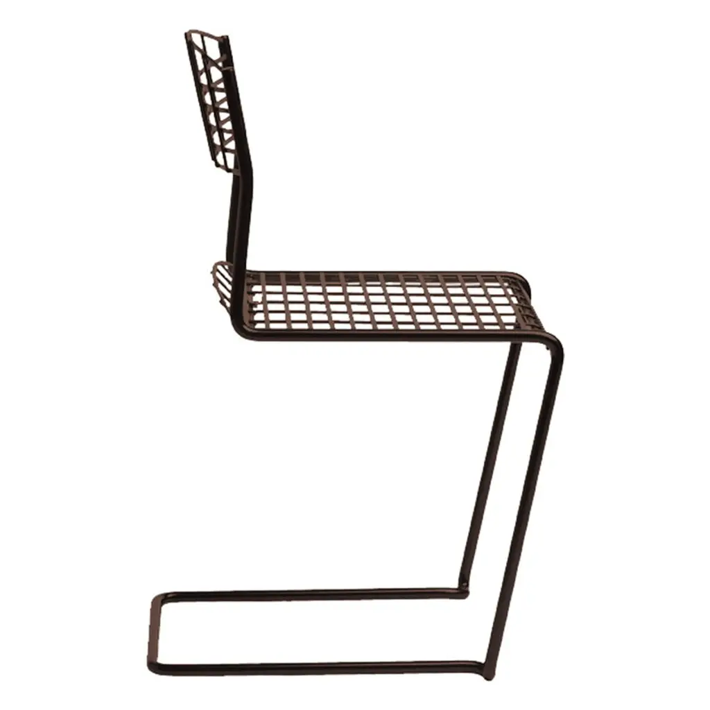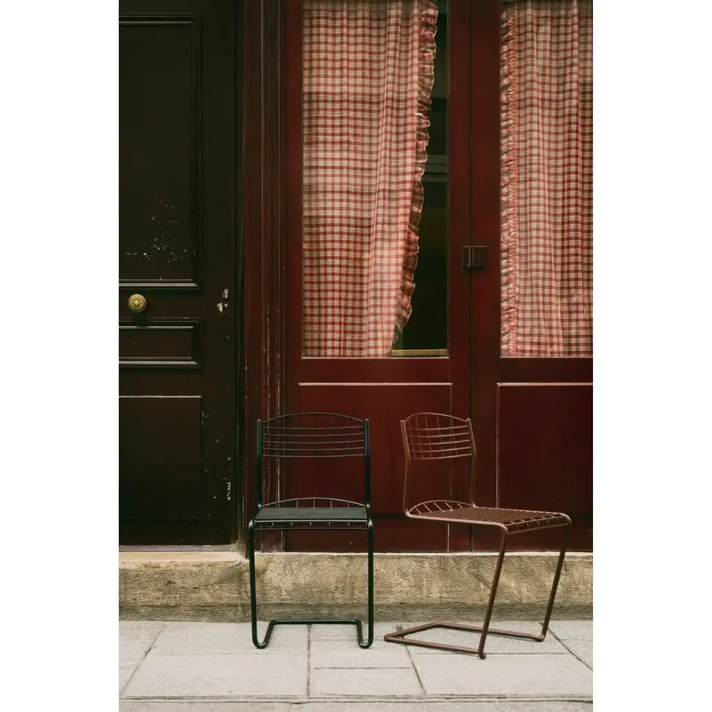 Grythyttan Stålmöbler's High Tech Chair, designed by Nils "Nisse" Strinning, is a minimalist, stackable steel chair suitable for both indoor spaces and outdoor use. The High Tech Chair features a steel wire seat and a slender bent steel tube structure that provides a comfortable, gently rocking seating experience. This distinctive steel base is a recurring feature in many of Grythyttan Stålmöbler's chairs. Launched in 1984, the High Tech Chair is part of Nisse Strinning's furniture collection that draws inspiration from the traditions of futuristic and industrial design. The hardwearing steel structure has made the High Tech collection especially popular in outdoor use, but the pieces have later gained popularity in indoor spaces as well. The products are made at Grythyttan Stålmöbler's factory in Sweden.