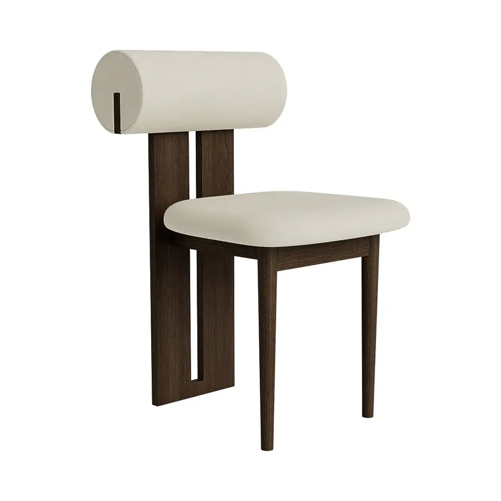 The Hippo Chair is a fully upholstered mainstay of their playful and sculptural Hippo seating line, designed by Kristian Sofus Hansen and Tommy Hyldahl. Its rounded, soft shapes are inspired by the hippopotamus, with a strong, barrel-like design. The chair features a unique blend of contrasting elements: the soft, upholstered seat and backrest are paired with a robust wooden frame, available in oak finishes like natural, light smoked, dark smokes, or black oak.