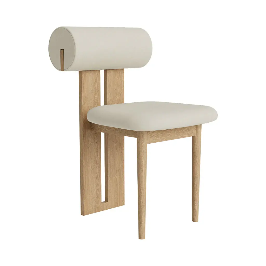 The Hippo Chair is a fully upholstered mainstay of their playful and sculptural Hippo seating line, designed by Kristian Sofus Hansen and Tommy Hyldahl. Its rounded, soft shapes are inspired by the hippopotamus, with a strong, barrel-like design. The chair features a unique blend of contrasting elements: the soft, upholstered seat and backrest are paired with a robust wooden frame, available in oak finishes like natural, light smoked, dark smokes, or black oak.
