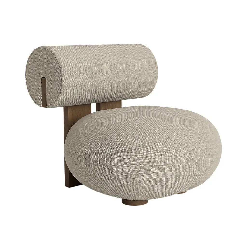 Soft, playful shapes characterise this family of upholstered pieces, the Hippo makes a stylish statement in any interior setting. The Hippo Chair stands on two sturdy legs and a wooden profile connecting the seat and back which in stark contrast to the soft shapes is hard-lined and strong. The Hippo series is influenced by the Hippopotamus mammal drawing upon its barrel-shaped torsos. The characteristic wooden leg profile comes in four different oak finishes; natural, light smoked, dark smoked and black and the seat and back come in a variety of upholstery options.