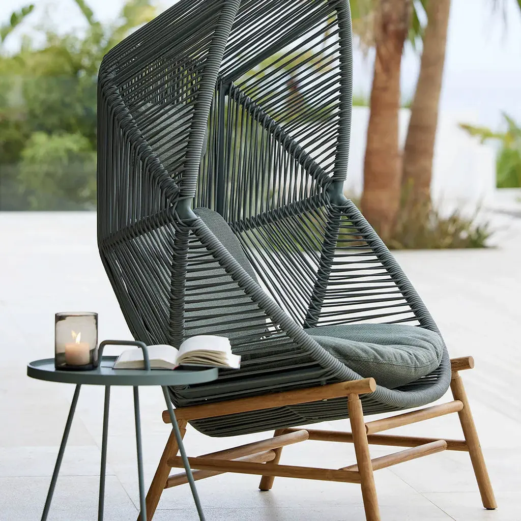 Hive chair is a sculptural silhouette, which can easily be the focal point in any outdoor space, either alone or in a group. It is designed by the Danish duo Foersom + Hiort-Lorenzen MDD. Hive is inspired by the beehive shape offering an embracing structure and design for you to have a haven for focus, reflection and relaxation. Hive is made from the weather-resistant Cane-line Weave ® in an artistic and transparent wicker pattern. You can choose to hang the chair up with a strong rope or place it on a solid base, which comes in teak and aluminium. The Hive chair comes with comfy cushions, and an adjustable neck cushion to provide maximum comfort. The cushions include QuickDry + Airflow system, ensuring you have dry cushions approximately 1 hour after a downpour.