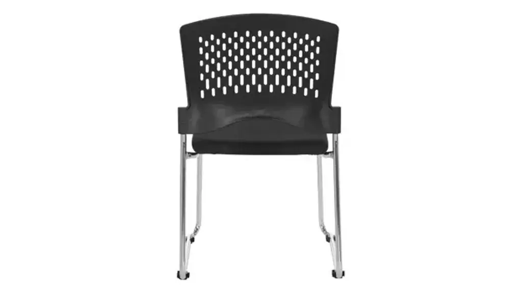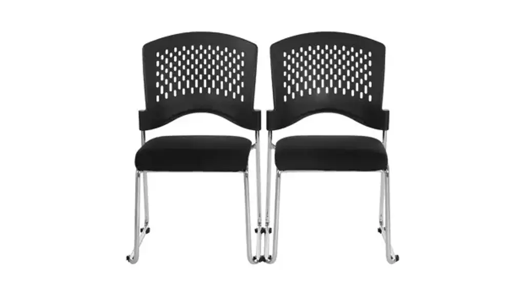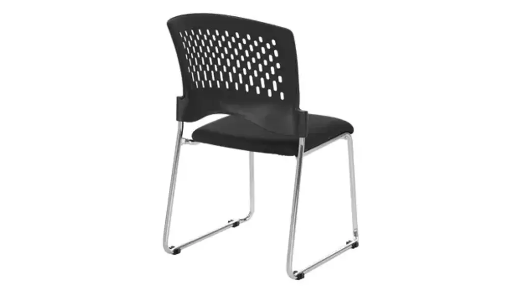Introducing the Shea Series Sled Base stacking chair without Arms! Say goodbye to cluttered meeting rooms and cramped breakrooms, and welcome the spaciousness and comfort that these stools provide. Pack of 20 chairs includes a convenient dolly for moving the chairs into storage areas. Crafted with a sturdy chrome metal frame, these chairs are built to last. The ventilated plastic back allows for air flow in the chair, while the Black FreeFlex padded fabric seats provide the utmost in seating comfort. Stackable so that you can save space when not in use.