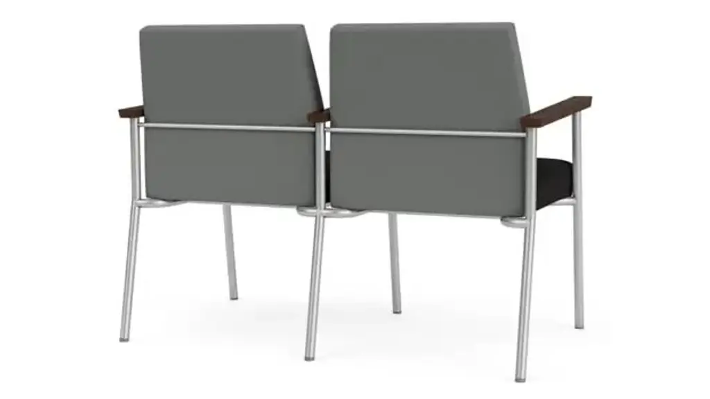 The Mystic 2 seater with center arms with its refined, tapered back and striking geometric arm design will give your space a clean, contemporary look. Features include sturdy steel construction, solid hardwood armrests with durable lacquer finish, and a comfortable Matrex seat support system. Alluring upholstery options. 300 lb weight capacity per seat. Overall Dimensions: 45" W x 25" D x 35" H. Ships ready for easy assembly.