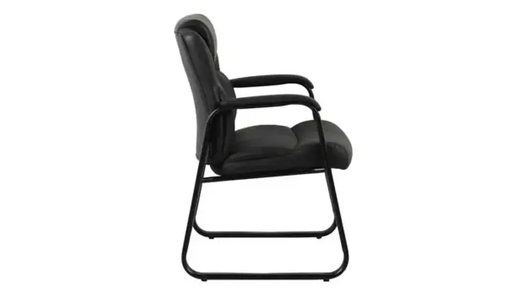 Introducing the Brady Executive Guest Chair, the perfect balance of comfort and sophistication for any professional setting. Designed with guest comfort in mind it features a durable steel sled base, generously cushioned seat and back, padded arms and luxurious black PU leather upholstery. The Brady chair is an ideal choice for conference rooms, reception areas, or executive offices. Ships ready for easy assembly.
