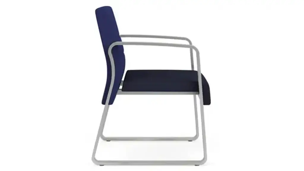 The Waterfall guest chair with sled base, with its soothing yet powerful styling, sloped arm design, and upholstered seat and back cushions will give your space an inviting, welcoming air. Heavy duty steel construction, durable powder-coat finish, ergonominally designed back, and a Matrex seat support system provide long-life comfort in commercial waiting and reception applications. Ideal for medical, educational and healthcare environments. 400 lb weight capacity. Overall Dimensions: 23" W x 25" D x 33" H. Ships ready for easy assembly.