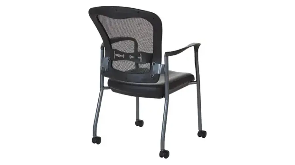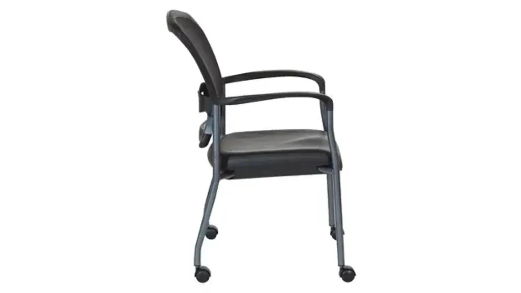 Introducing the Walworth Series Guest Chair with casters and your choice of fabric padded seat color! Say goodbye to cluttered meeting rooms and cramped breakrooms, and welcome the spaciousness and comfort that these chairs provide. Choose from over 50 different fabric and polyurethane upholstery choice to create the environment your team will enjoy for years. Crafted with a sturdy titanium colored metal frame, these chairs are built to last. The ventilated mesh back allows for air flow in the chair, while the padded fabric seat provides the utmost in comfort.