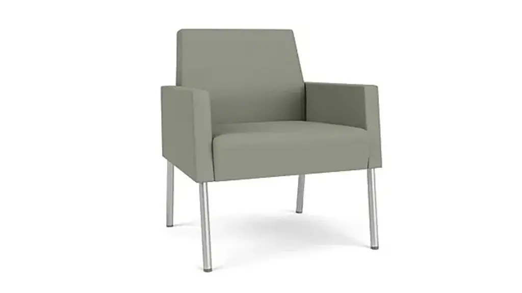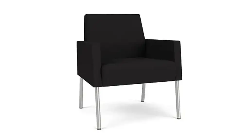 The Mystic Lounge guest chair with its sophisticated, tailored look, offers the ideal balance of style, function, and value for reception areas, home office and lounge seating applications. Heavy-duty construction with comfortable upholstered cushions and steel legs. Seat features environmentally friendly, durable and comfortable 2.6 density soy based foam, and a Matrex seat support system for long-life sitting comfort. Fully Upholstered panel arms and refined tapered back. Wall-saver design to prevent marks and damage to walls. Designed for high-use reception, lounge and pull-up applications. Available in several stain-resistant fabric upholstery options. Ships ready for easy assembly.