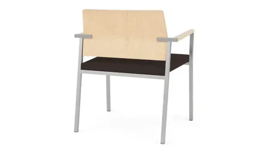 The Avon oversize chair with its crisp, modern design, impresses from every angle. Lean against thoughtfully contoured backrests and rest your arms comfortably on solid Natural Maple or Riftwood Walnut armcaps. Fabric Upholstered seat and high-pressure laminate back in Natural Maple or Riftwood Walnut. Sturdy steel construction with durable powder coat finish provides years of use. Available in several easy-clean, fabric upholstery options. 400 lb weight capacity. Ships ready for easy assembly.