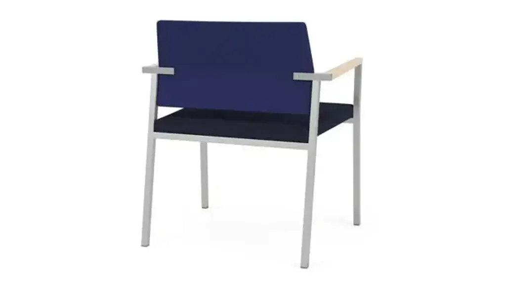 The Avon oversize chair with its crisp, modern design, impresses from every angle. Lean against thoughtfully contoured backrests and rest your arms comfortably on solid maple armcaps. Upholstered seat and back. Sturdy steel construction with durable powder coat finish provides years of use. 400 lb weight capacity. Overall Dimensions: 28" W x 23" D x 32" H. Ships ready for easy assembly.