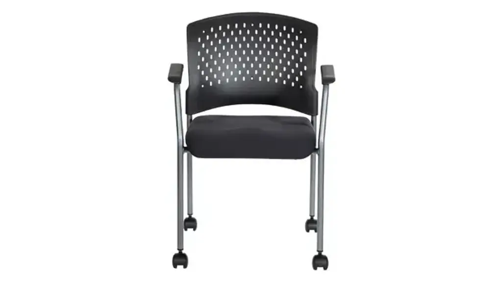 Homeseatinglobby & Receptionlobby & Guest Chairs - Metalplastic Vent Back Guest Chair With Arms, Casters And Black Fabric Seat By Wfb Designs