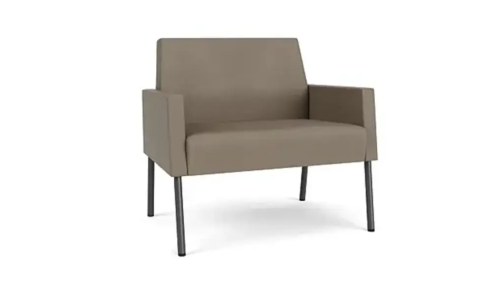 The Mystic Lounge Bariatric with its sophisticated, tailored look, offers the ideal balance of style, function, and value for reception areas, home office and lounge seating applications. Heavy-duty construction with comfortable polyurethane upholstered cushions and steel legs. Seat features environmentally friendly, durable and comfortable 2.6 density soy based foam, and a Matrex seat support system for long-life sitting comfort. Fully Upholstered panel arms and refined tapered back. Wall-saver design to prevent marks and damage to walls. Designed for high-use reception, lounge and pull-up applications. Steel frame is easy to clean and can withstand years of harsh cleansers. Available in several stain-resistant polyurethane upholstery options. Ships ready for easy assembly.