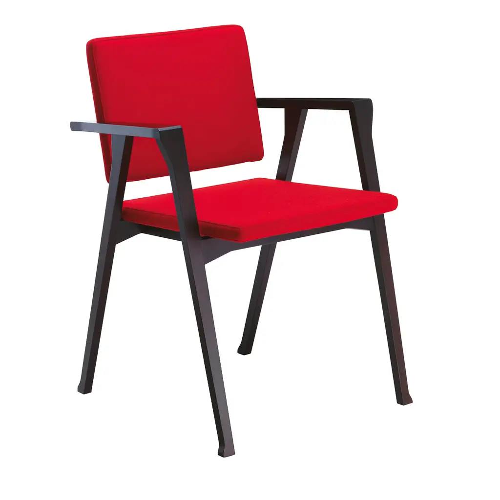The Brooklyn guest chair with its contemporary geometric styling, distinctive chamfered edge under the armrest, and upholstered seat and back cushions will give your space an elegant, sophisticated look. Designed for reception areas, lounges, and pull-up seating applications. Features include sturdy hardwood construction, durable lacquer finish, and a comfortable Matrex seat support system. 300 lb. weight capacity. Overall Dimensions: 22.5" W x 23.5" D x 34" H. Ships ready for easy assembly with all necessary tools included.