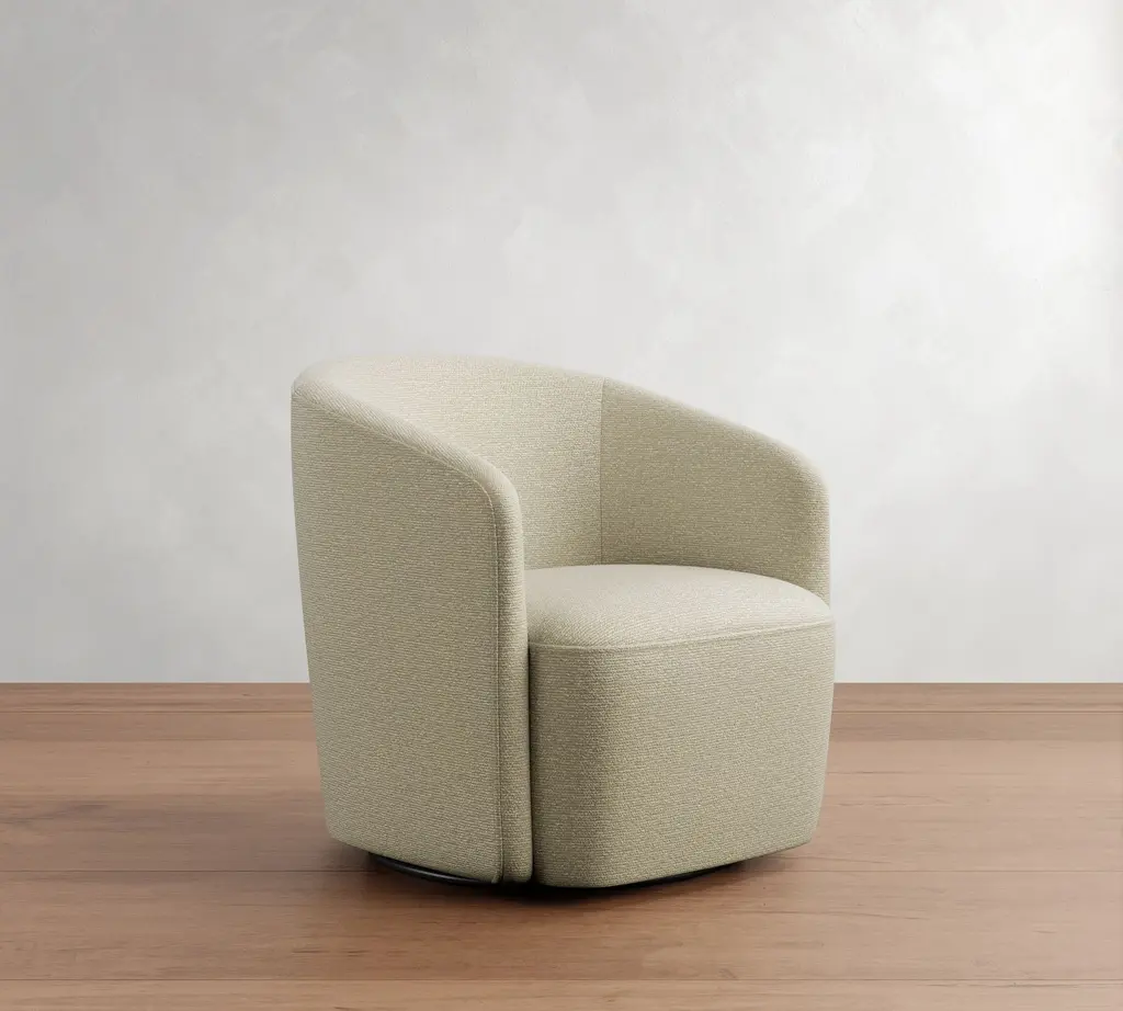 The Honey Cobblestone Modern Swivel Papasan Chair invites you to sink into a rounded, comfort-forward seat that rotates for effortless conversation and relaxation. Upholstered in 100% polyester fabric in a honey cobblestone hue, the generously padded cushion and curved back cradle the body while a steady base delivers smooth 360-degree swivel. Sized for living room lounging, this papasan balances sculptural presence with everyday comfort for reading, watching TV, or resting.