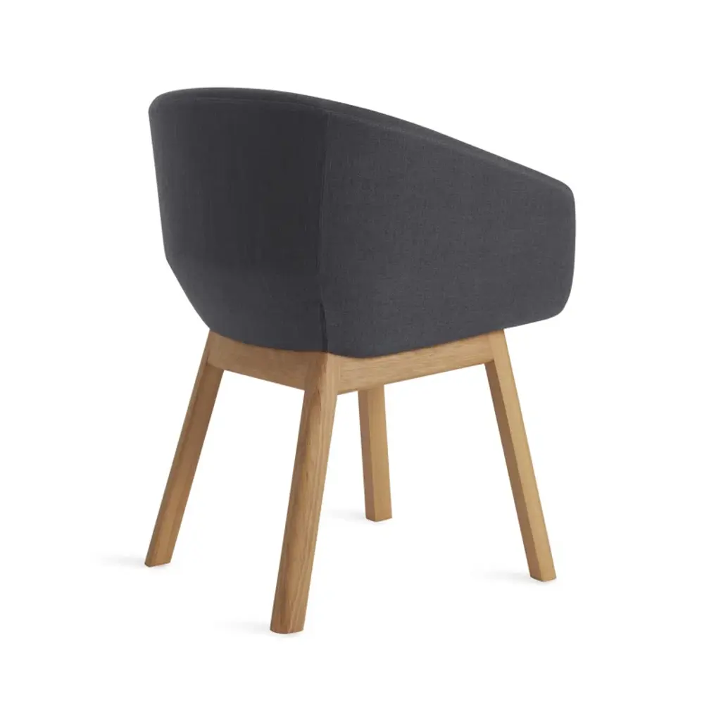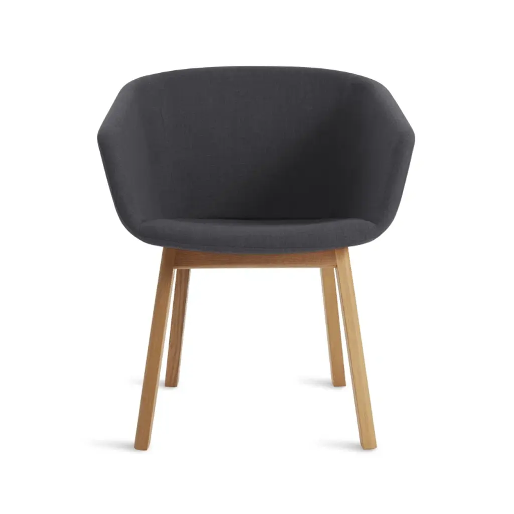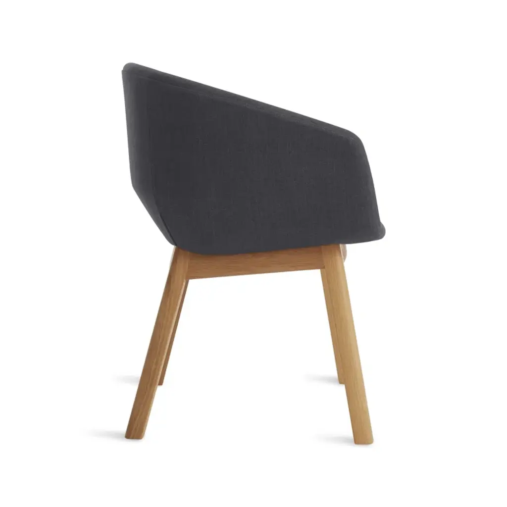 Do we really need chairs? Well, if we don't want to stand, sit, or lie on the floor, the answer is a resounding "yes!" Do they need us? Nope, not one bit. But don't let that tension get in the way of a beautiful relationship. Sit with comfort and style. Rest your arms and know that the Host will take care of you and your guests. The fully upholstered and (well) padded seat bucket features a soft facet back detail. With solid wood legs.
